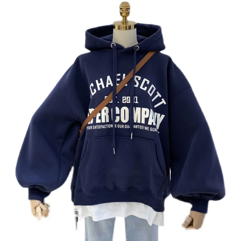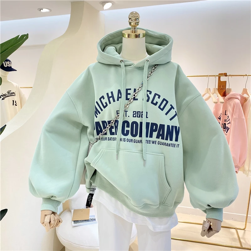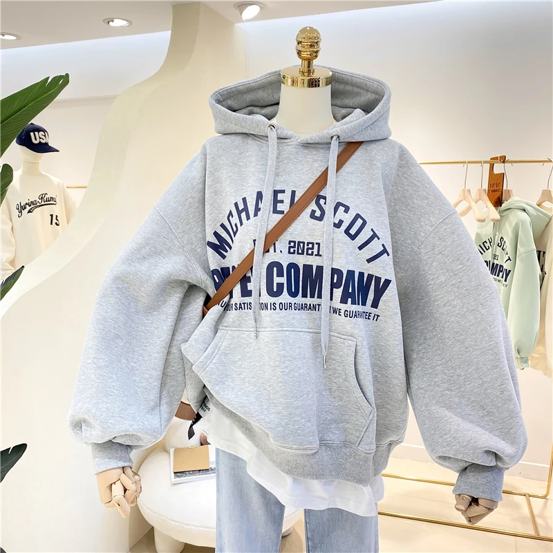 オーバーサイズフリースパーカー女性の秋冬韓国スタイルルーズシックな香港風味ジャケット綿長袖プリントカジュアル - TopDealBox