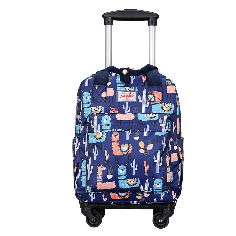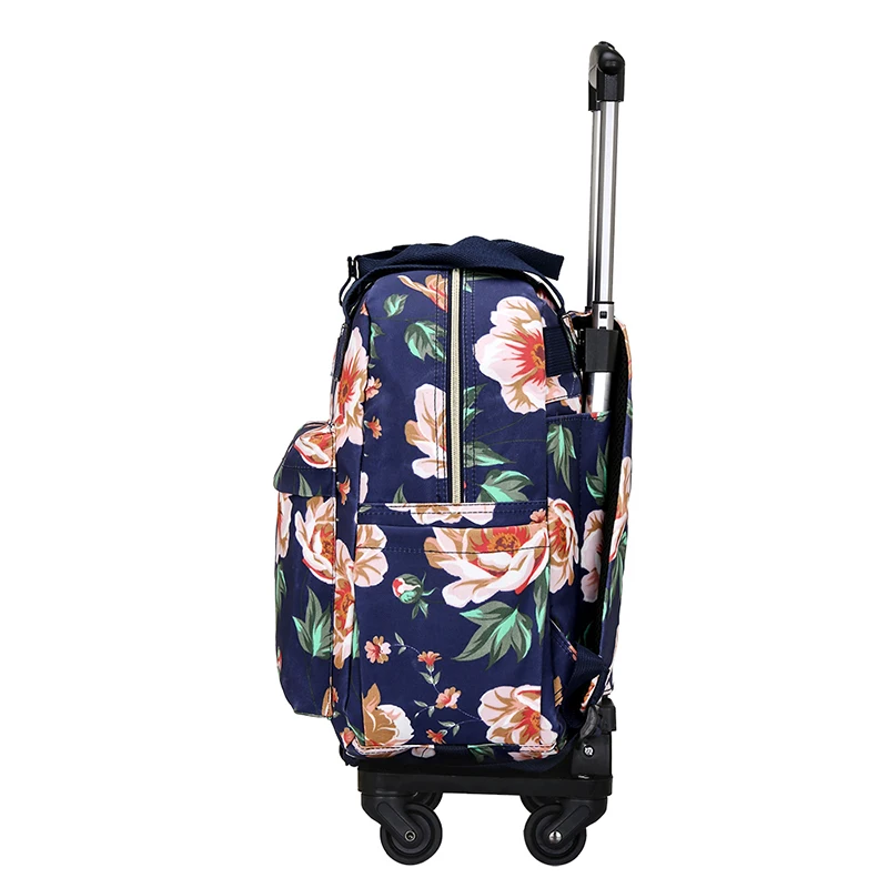 女性の取り外し可能なプルロッドバックパック防水プリントトラベルバッグ軽量ハンドヘルド搭乗バッグロックとホイール付き - TopDealBox