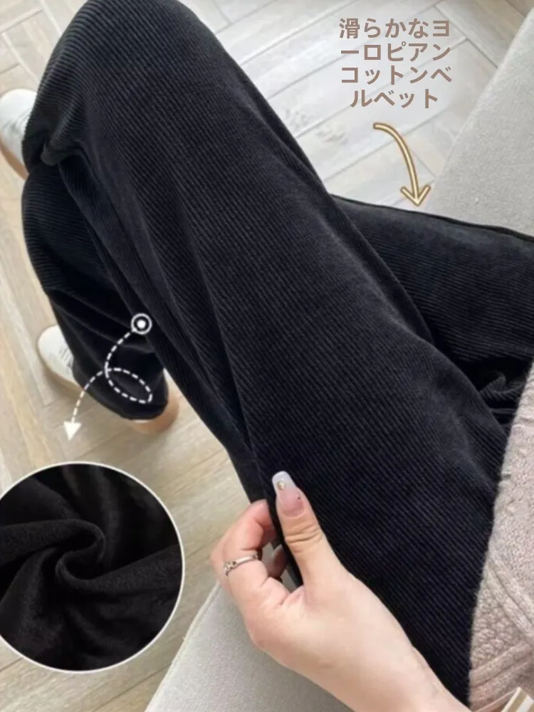 女性の秋冬痩身ワイドレッグパンツフリース裏地カジュアルドレープルーズハイウエストスポーツストレートカットズボン - TopDealBox