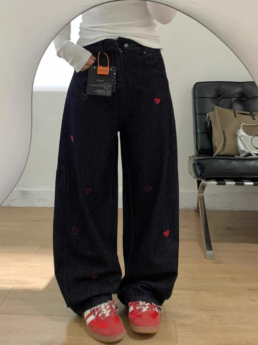 ♡Quick viewプラスサイズの女性用アメリカンハイストリートワイドレッグジーンズ、ヴィンテージルーズフィット、ハイウエストストレートロングパンツ、スリム効果あり1771 JPYHot★★★★★4.4