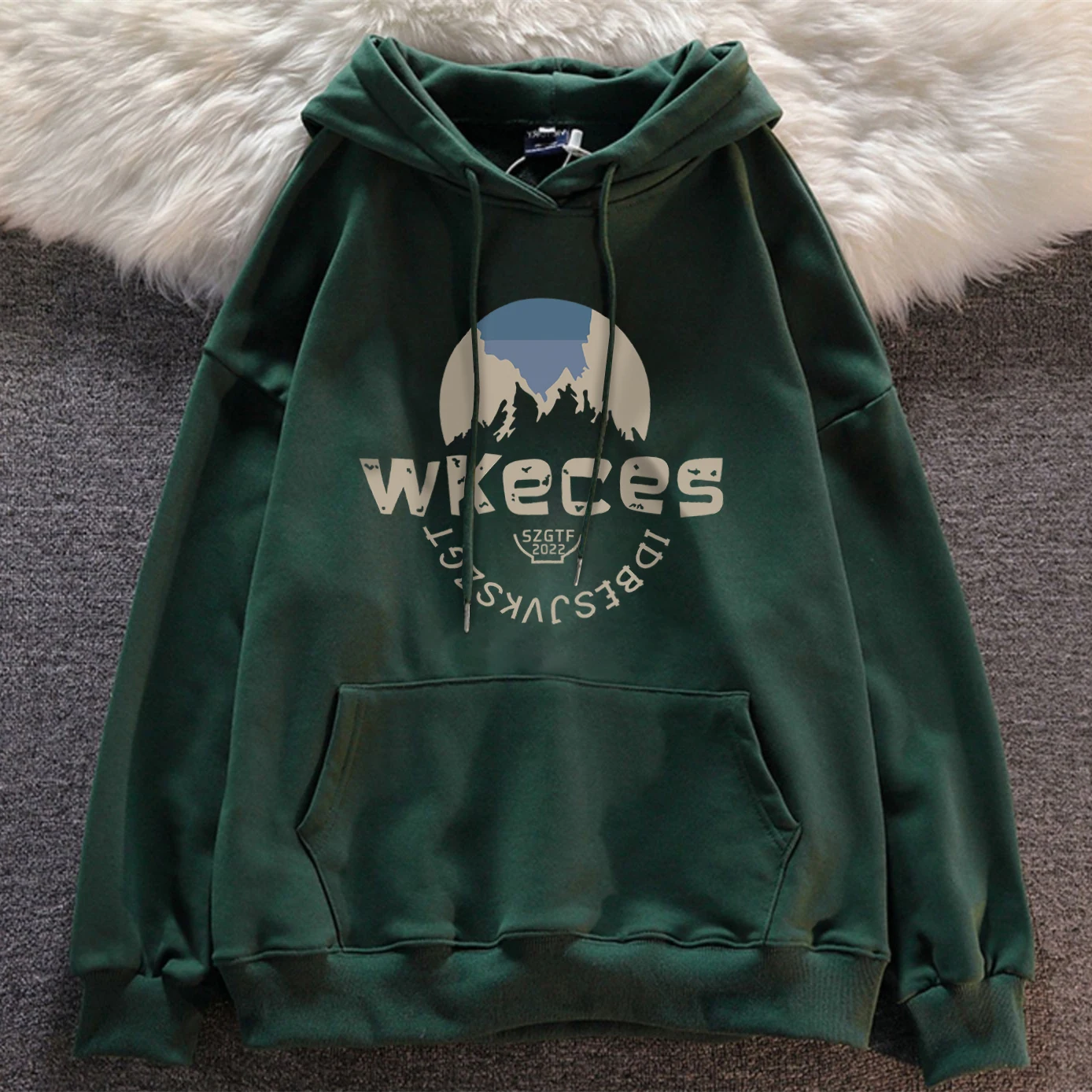 オーバーサイズストリートスタイルグリーンフリース裏地パーカー女性のトレンディな秋冬コート韓国語バージョン長袖ルーズフィットスウェットシャツ - TopDealBox