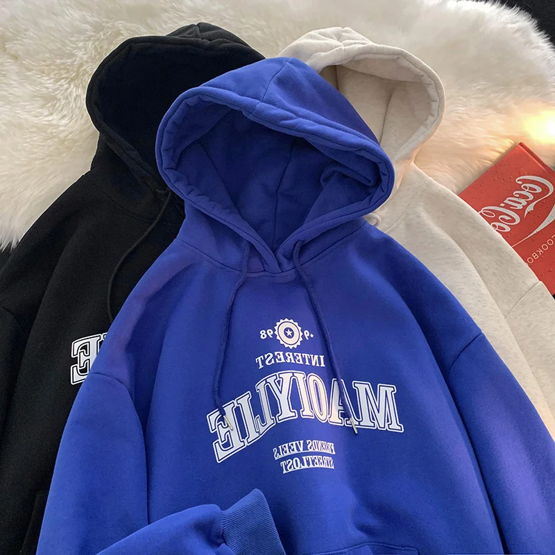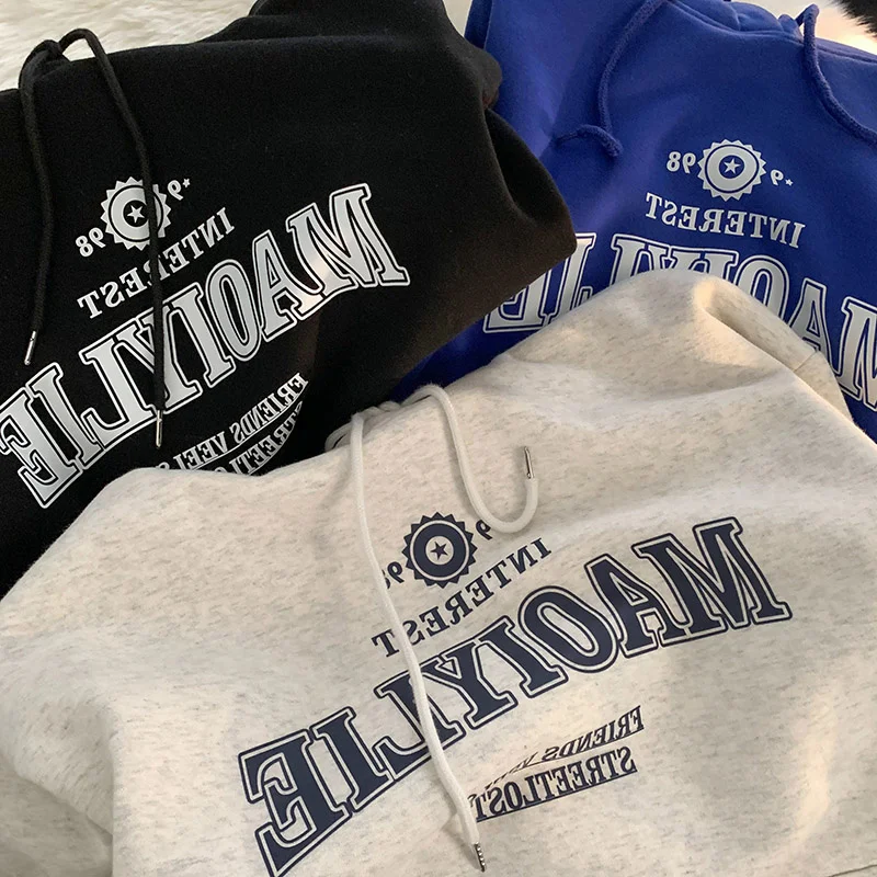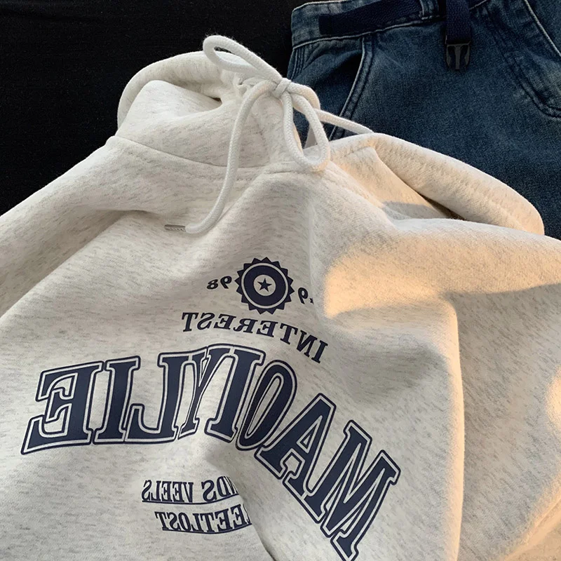 グレーフリース裏地特大パーカー女性の怠惰なスタイルのスウェットシャツ韓国語バージョン長袖カジュアルアウタートップ - TopDealBox