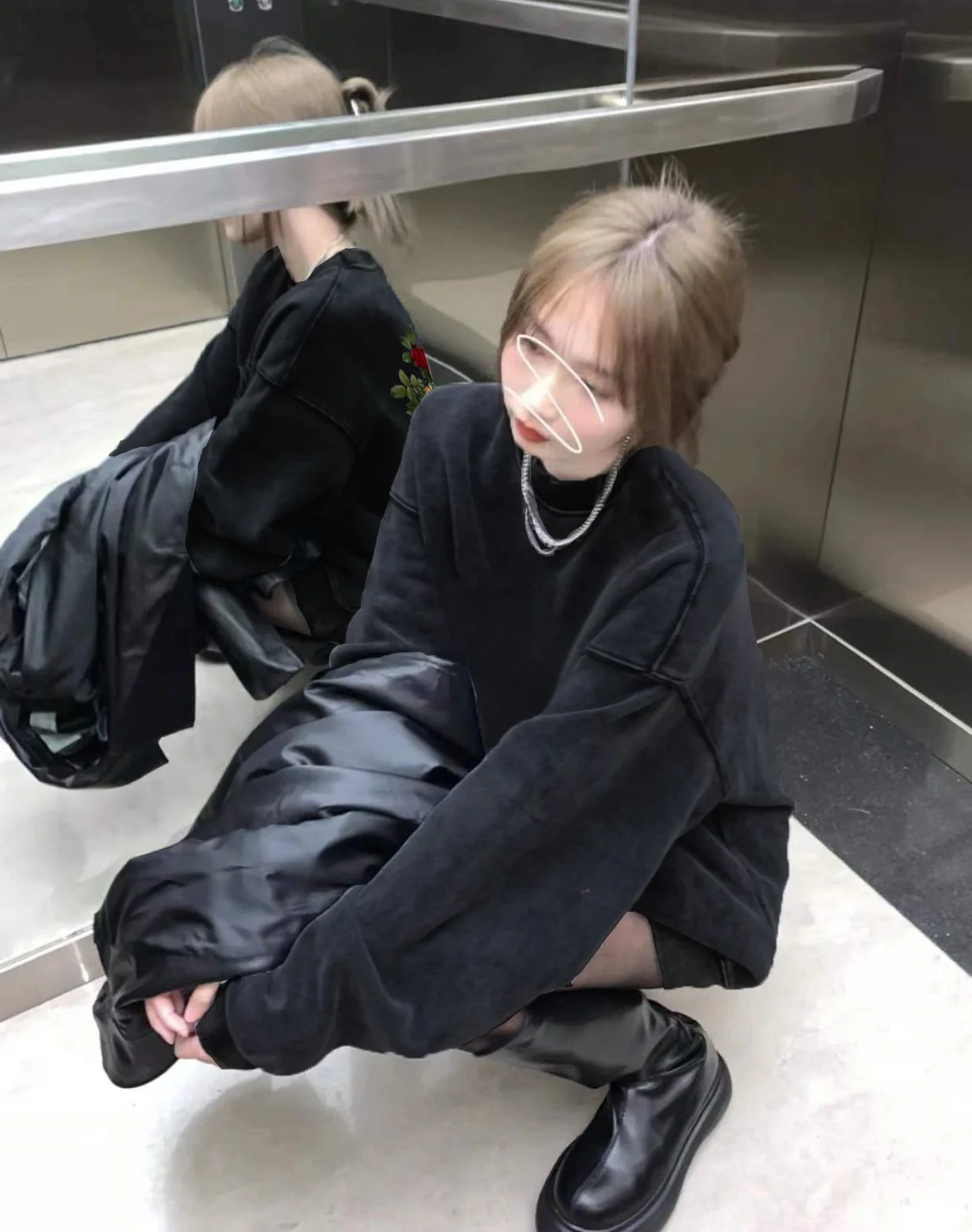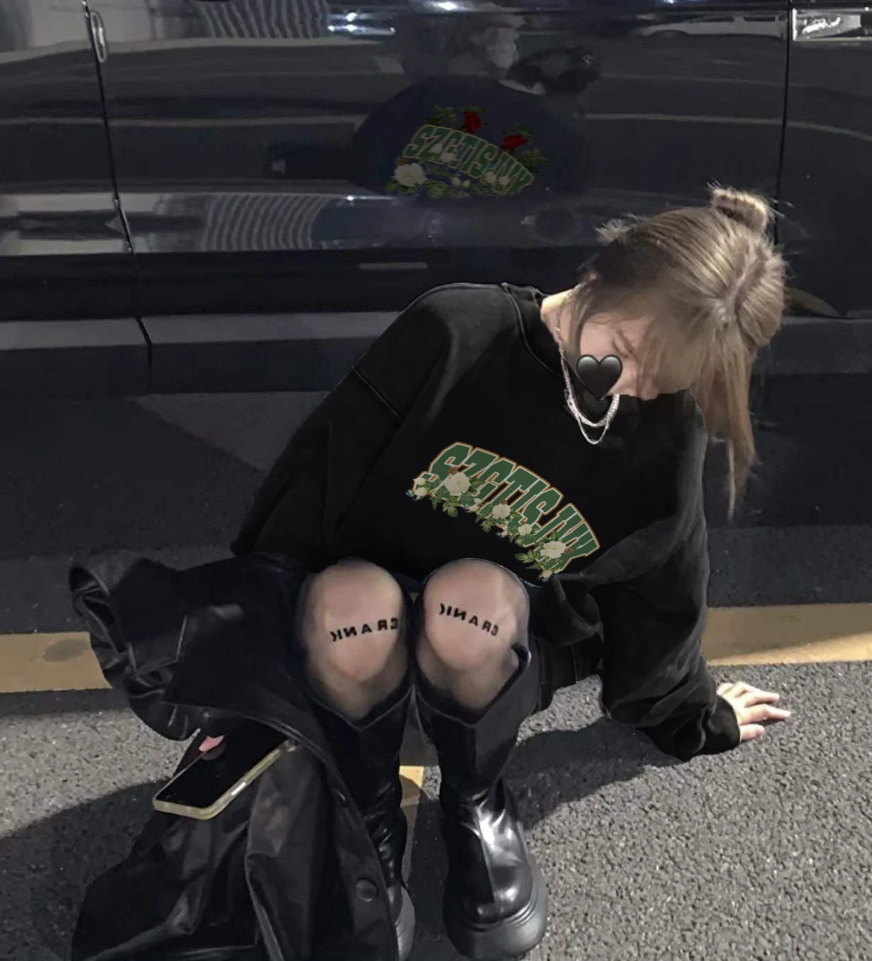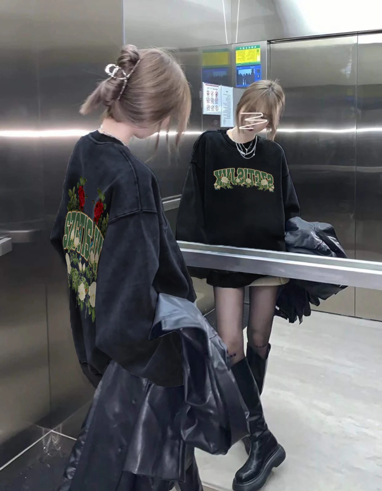 デザインセンセーションローズプリントフリース裏地長袖女性のパーカーストリートスタイルヒップホップトレンディ秋冬トップ - TopDealBox