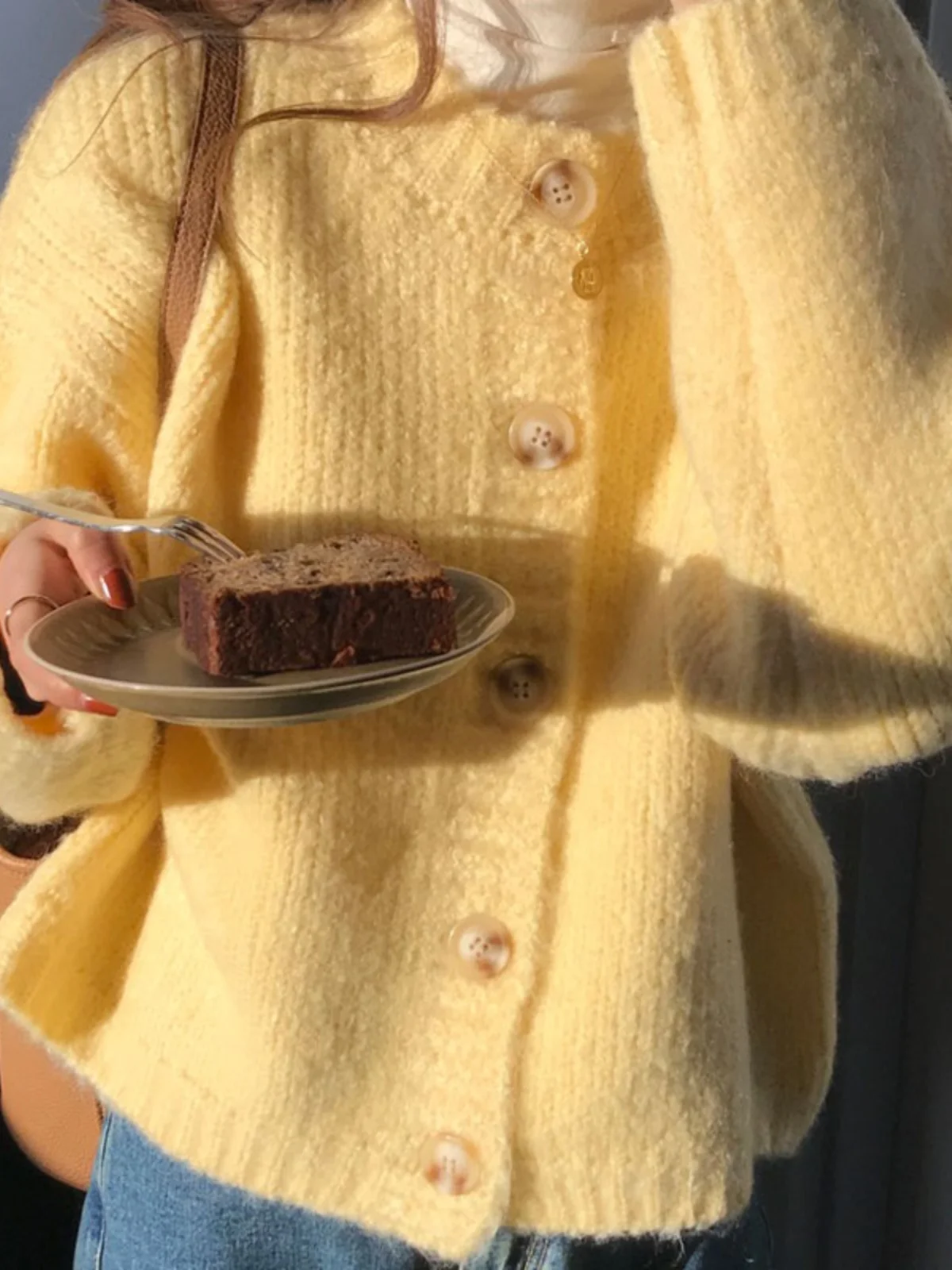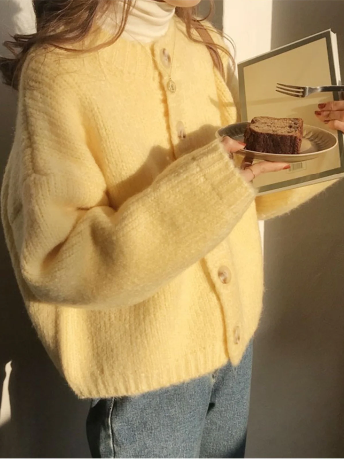 黄色のオープンカーディガンセーター女性ルーズアウター優しいスタイル春秋ニットコート女性韓国語バージョンラウンドネック長袖 - TopDealBox