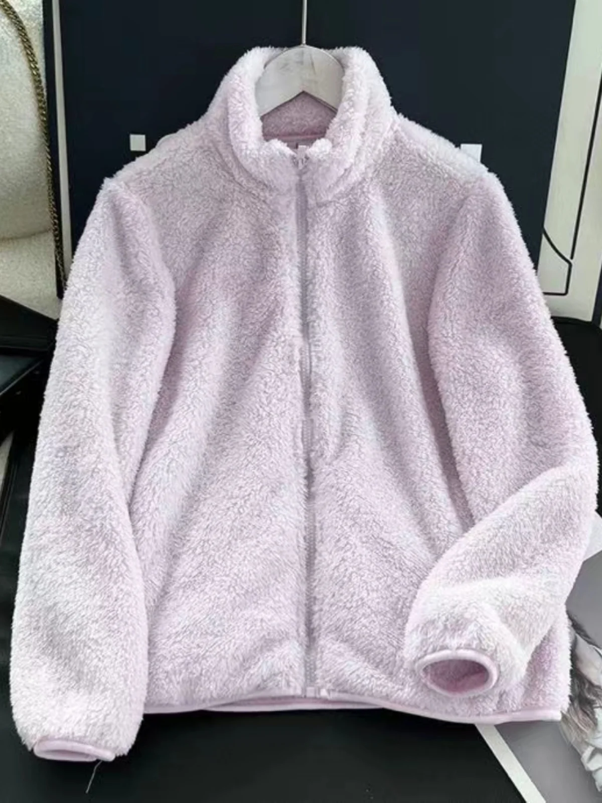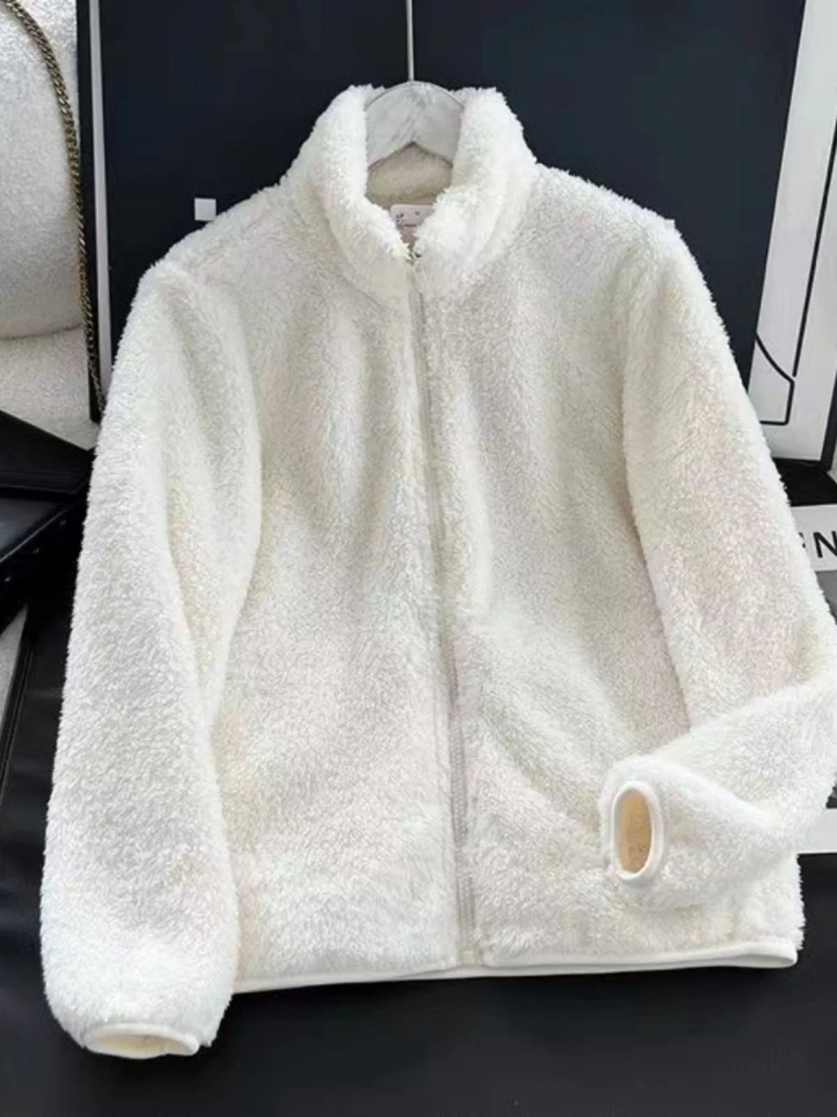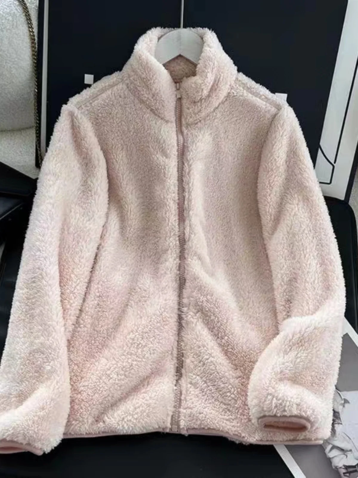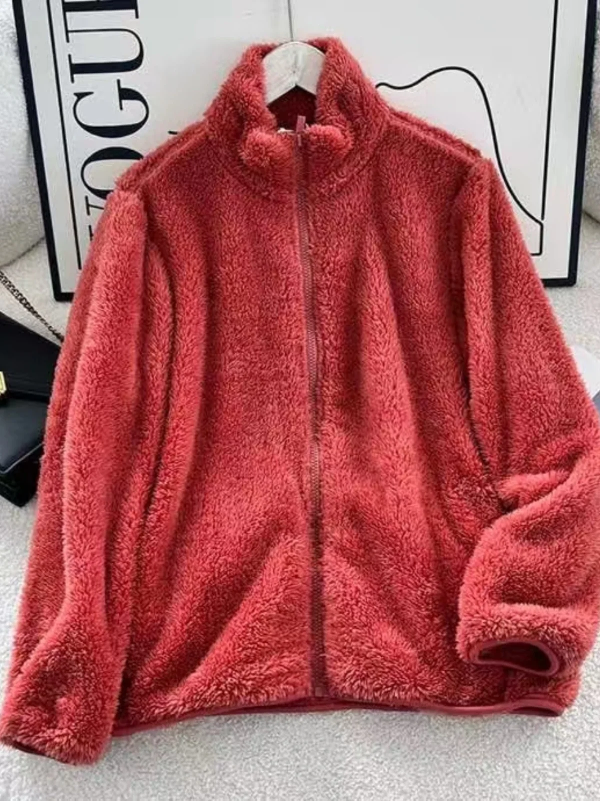 秋の女性のロングベルベットフリースジッパー長袖コーラルフリースジャケットアウターカジュアル快適なポリエステル繊維コート - TopDealBox