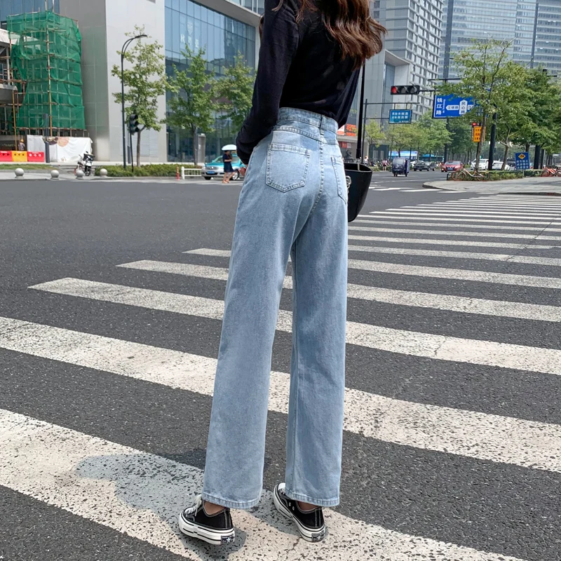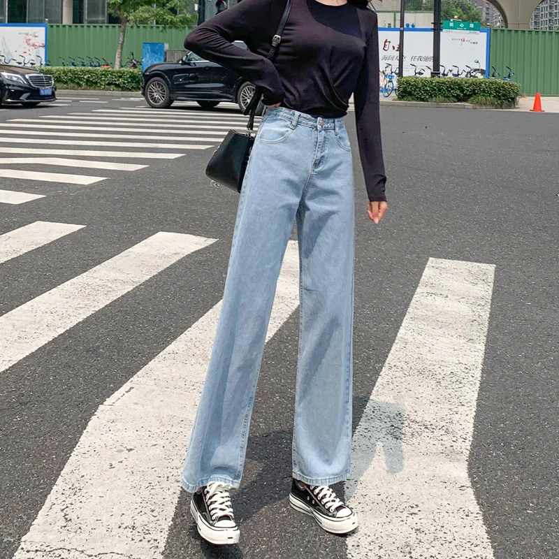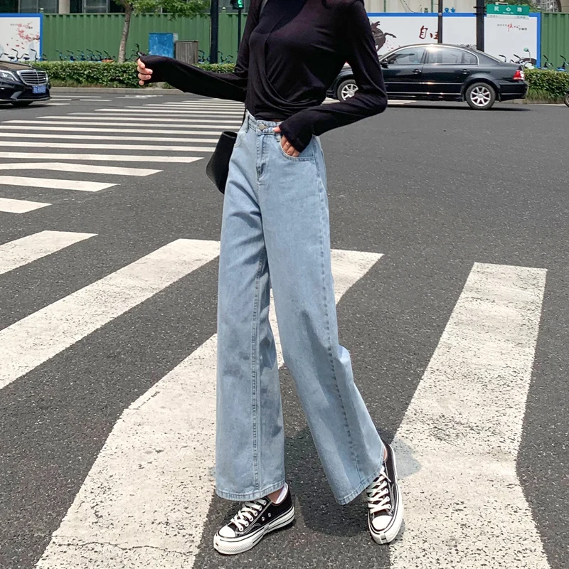 ハイウエストワイドレッグジーンズ女性ルーズストレートシック香港スタイル床長パンツプラスサイズ春の新着 - TopDealBox