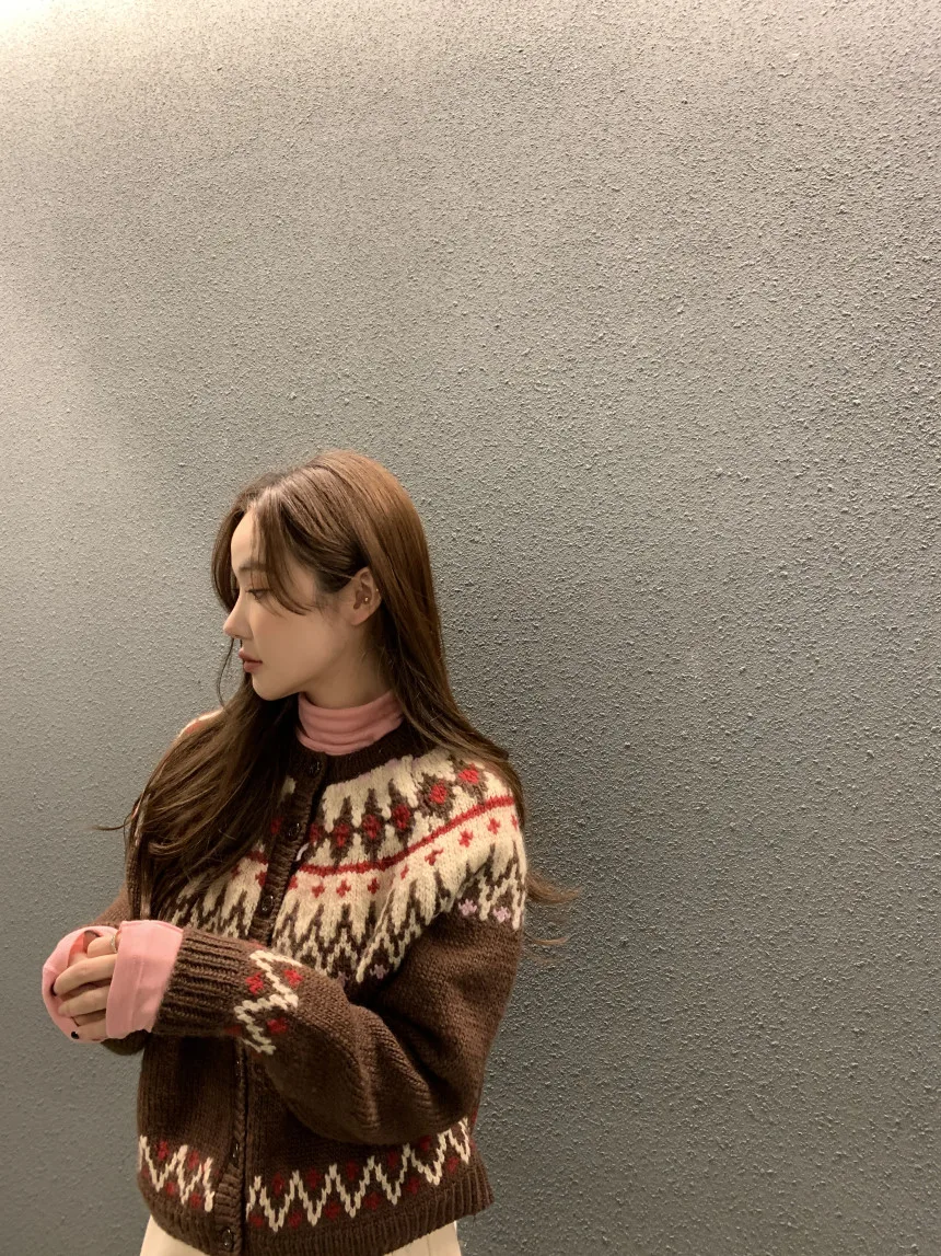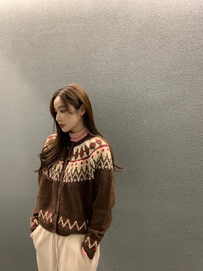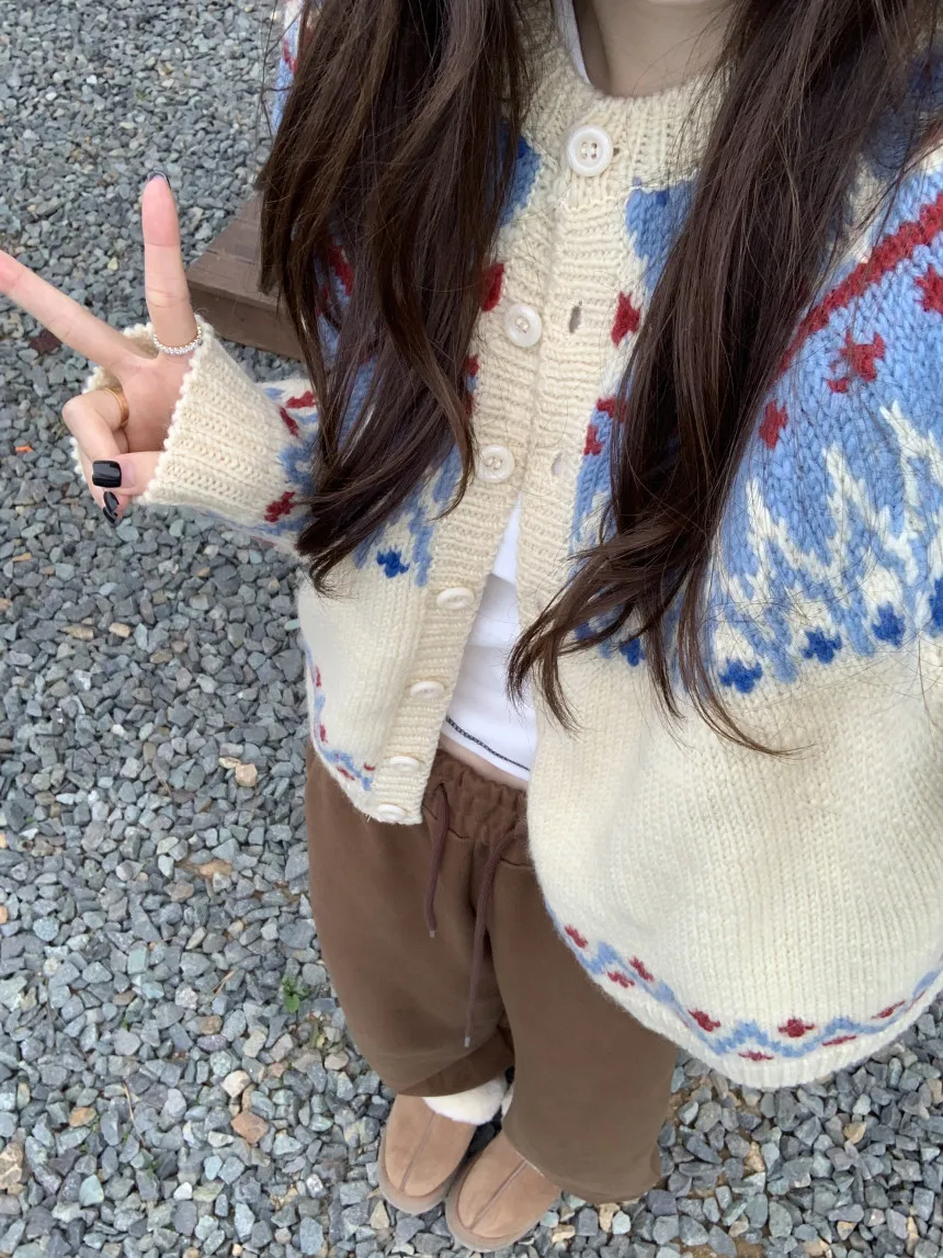 レトロ秋冬花柄ニット長袖ラウンドネックセーターコート女性ルーズ怠惰なオープンカーディガン暖かさ熱ポリエステル繊維 - TopDealBox
