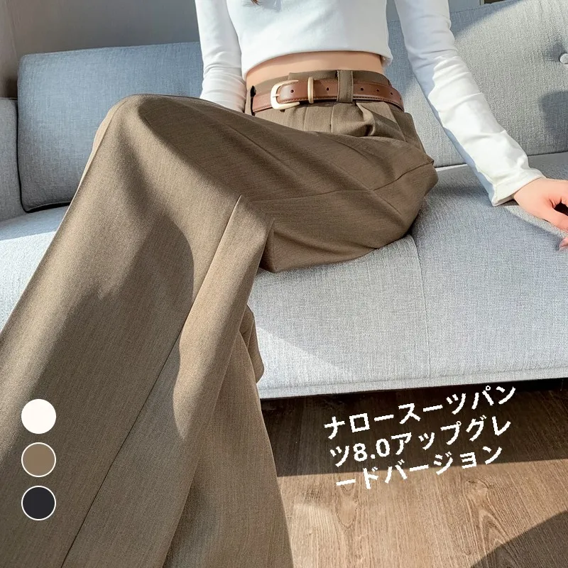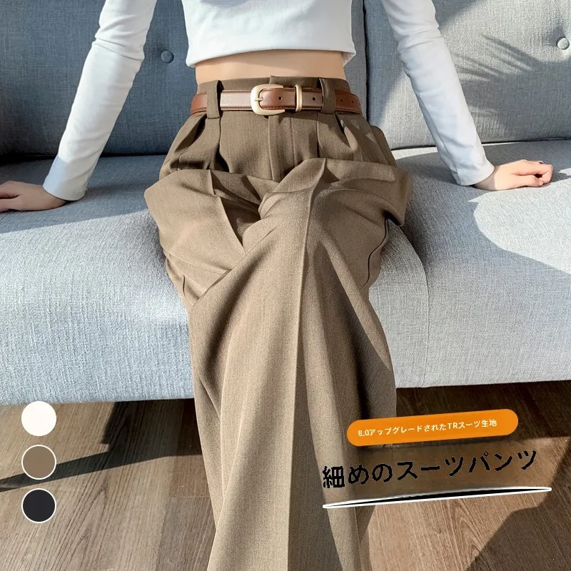ハイウエストストレートレッグスーツパンツ女性の秋の新ナローバージョンワイドレッグカジュアルパンツ床長パンツ - TopDealBox