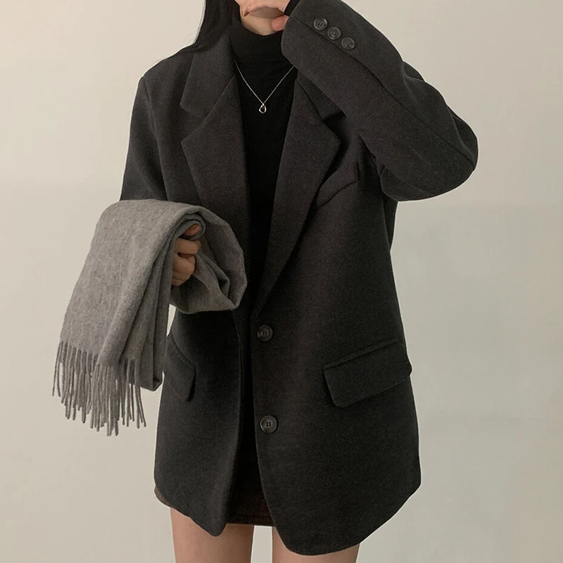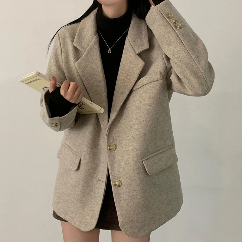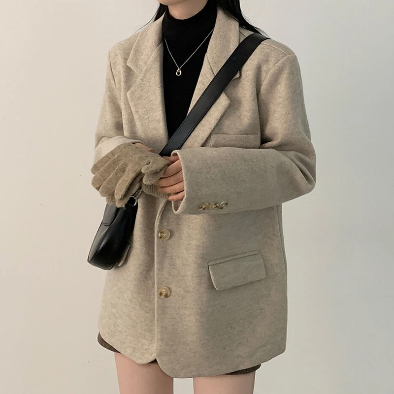 エレガントな冬肥厚ウールスーツコートヴィンテージラペルシングルボタンルーズフィット多用途女性のアウターウェア暖かいスタイリッシュ - TopDealBox