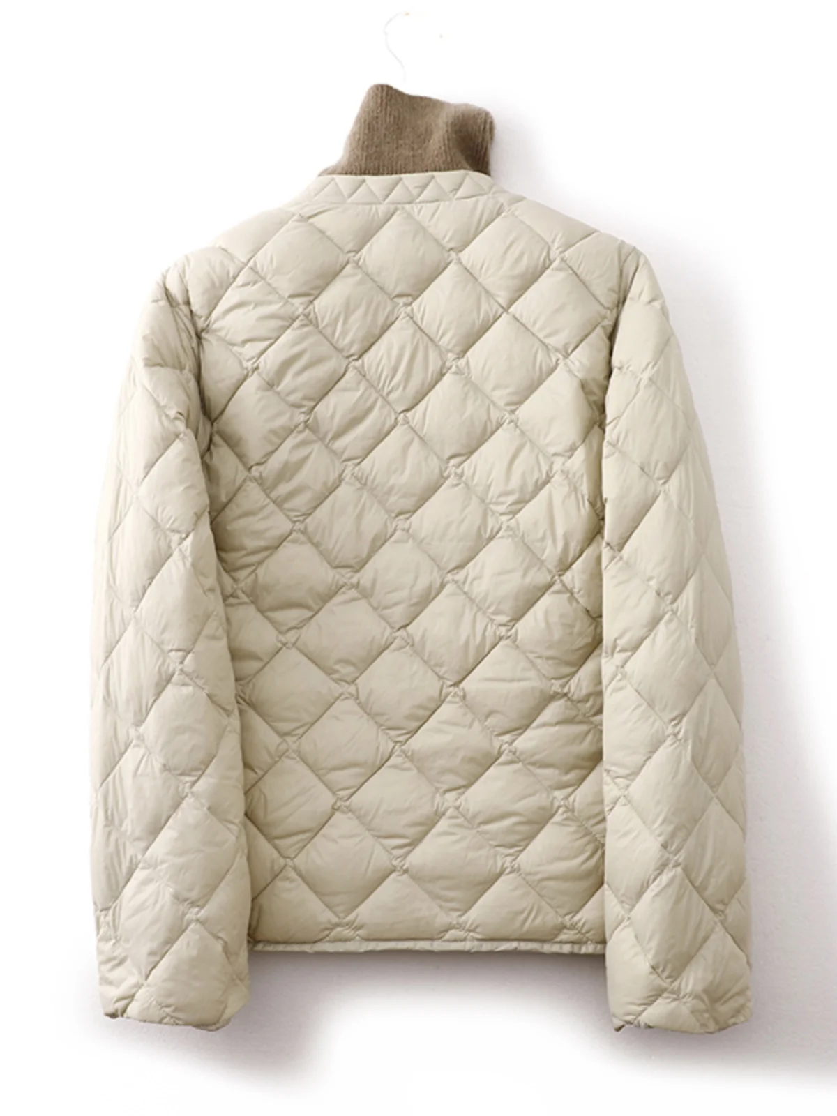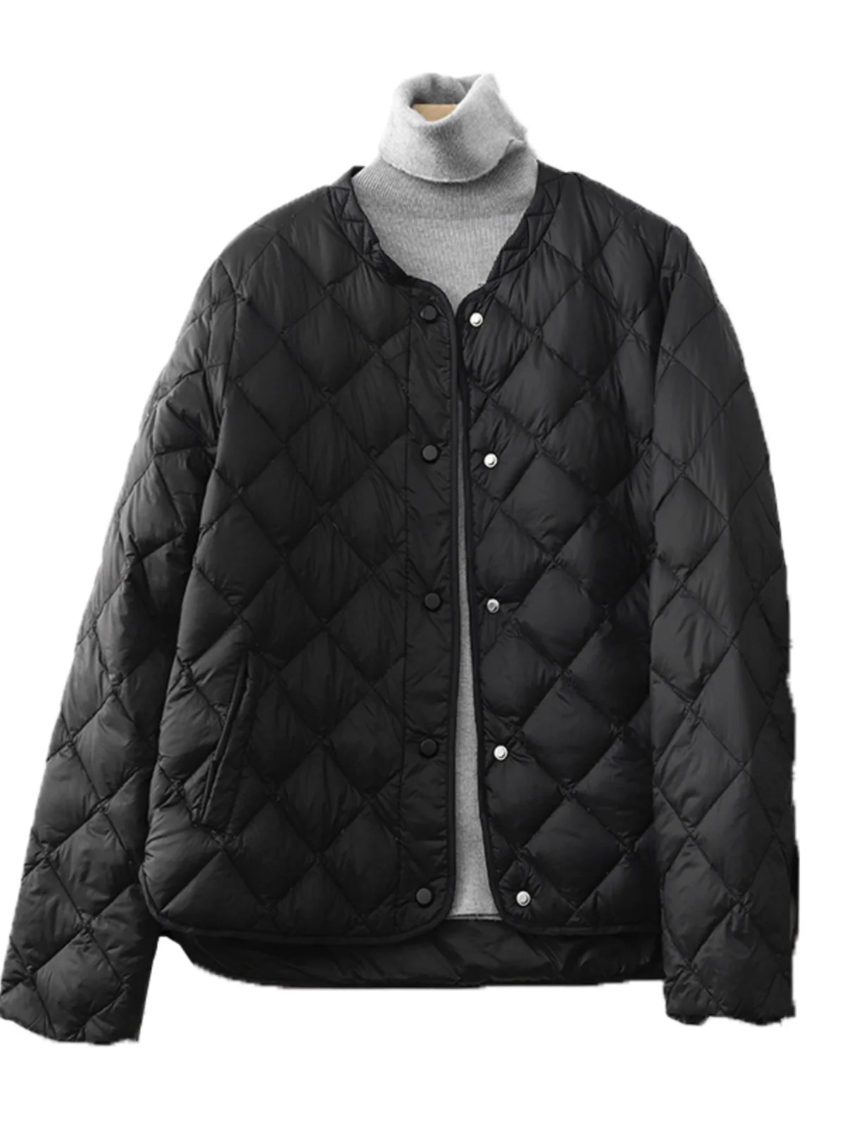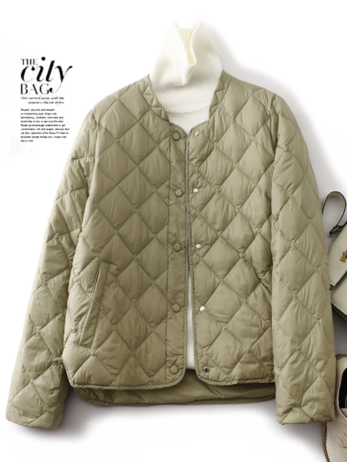 軽量キルティングコットンジャケット女性のルーズフィットショートアウタースタンドカラーダイヤモンドパターン秋冬カジュアルコート - TopDealBox