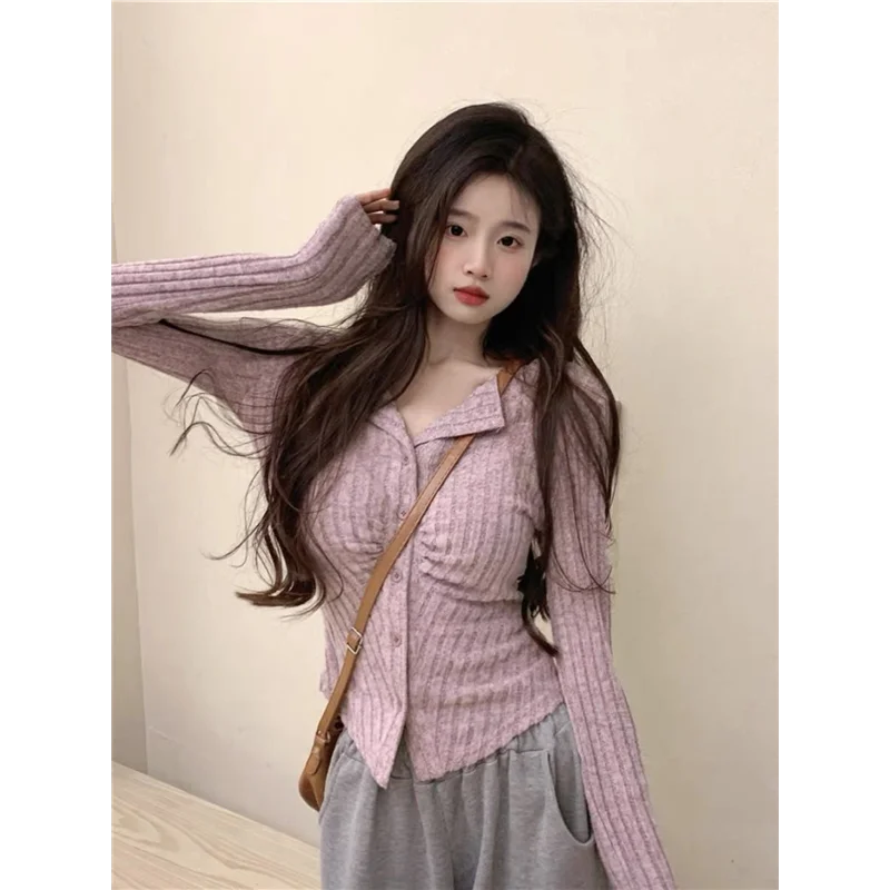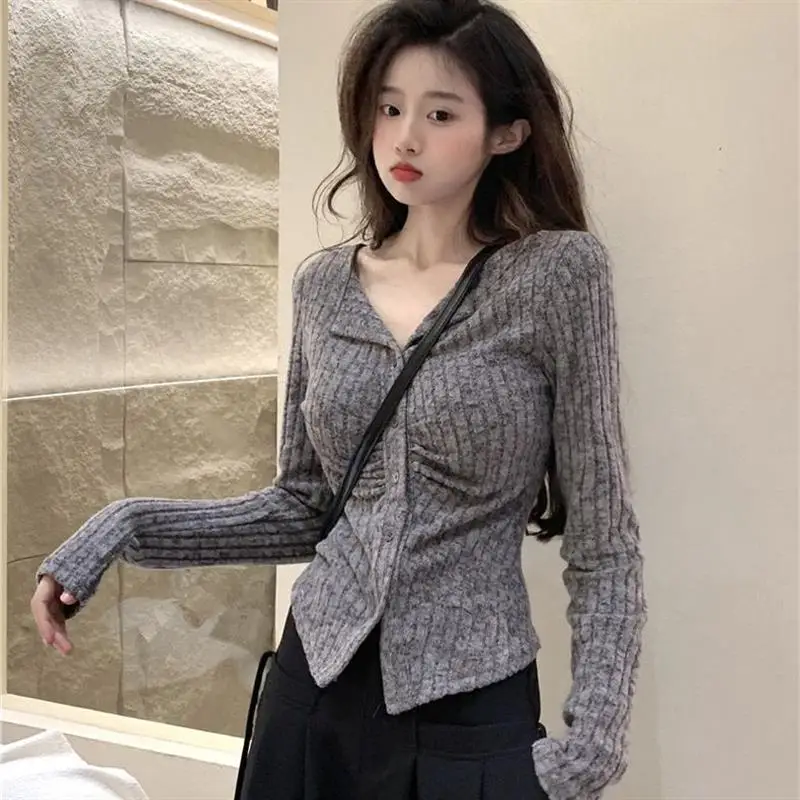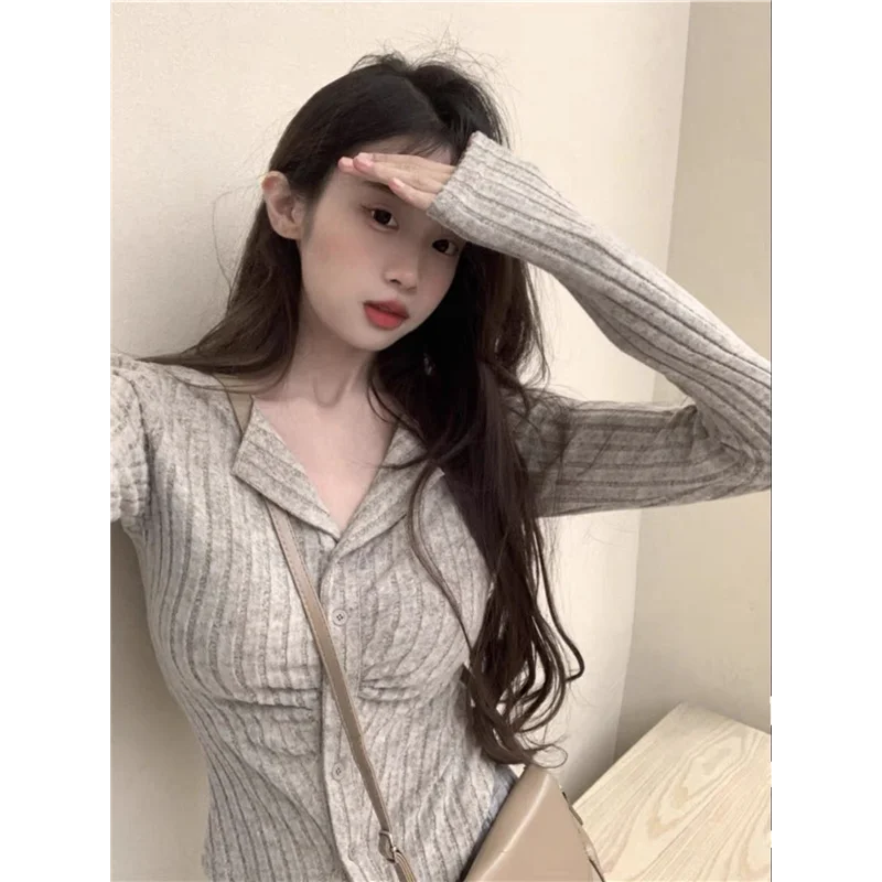 アメリカンスタイルニットセーターレディース長袖ターンダウン襟痩身デザイン秋のファッショントップ年齢軽減トレンド - TopDealBox