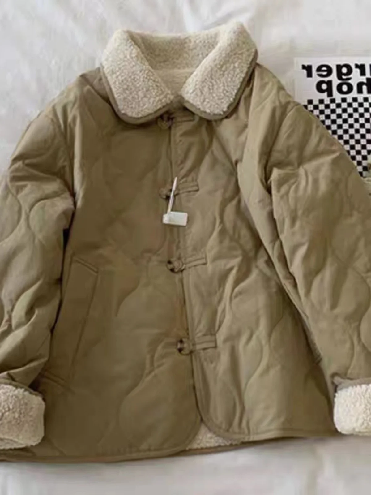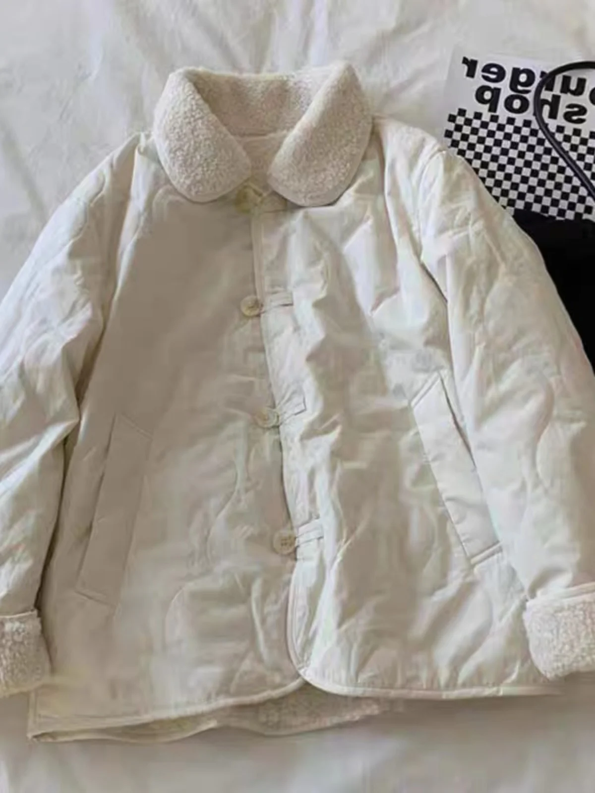 両面着用ラムファージャケットカジュアル長袖ターンダウン襟プラスサイズの女性の秋冬暖かい綿コート - TopDealBox