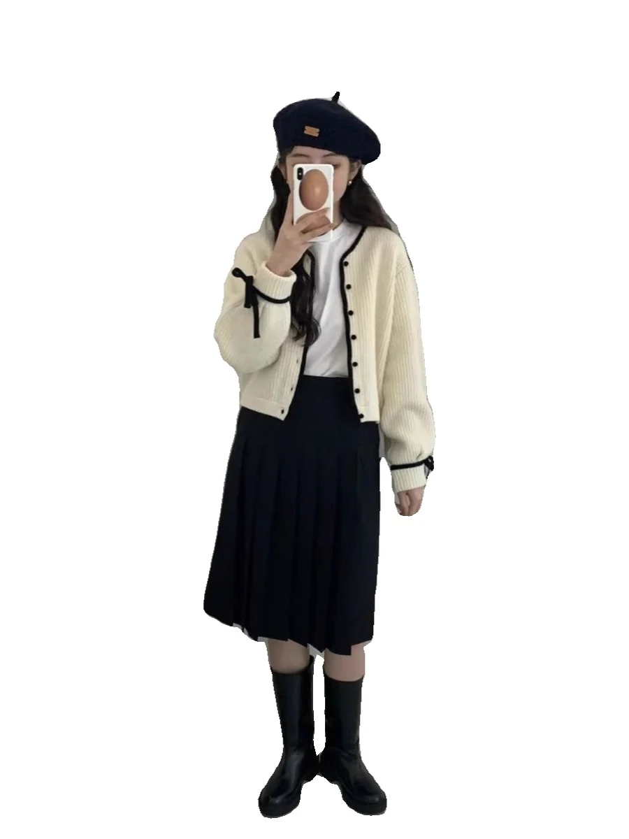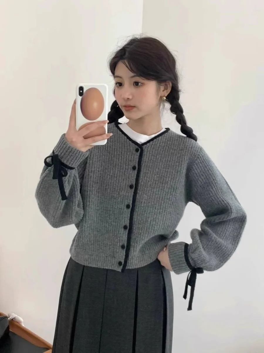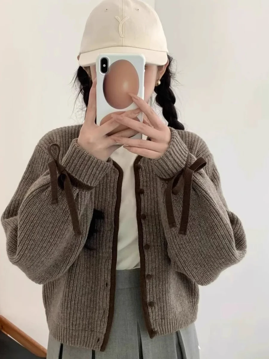 レトロニットショートカーディガン女性の初秋のアウターフレグランススタイルセータージャケット女性アウターレイヤートップ - TopDealBox