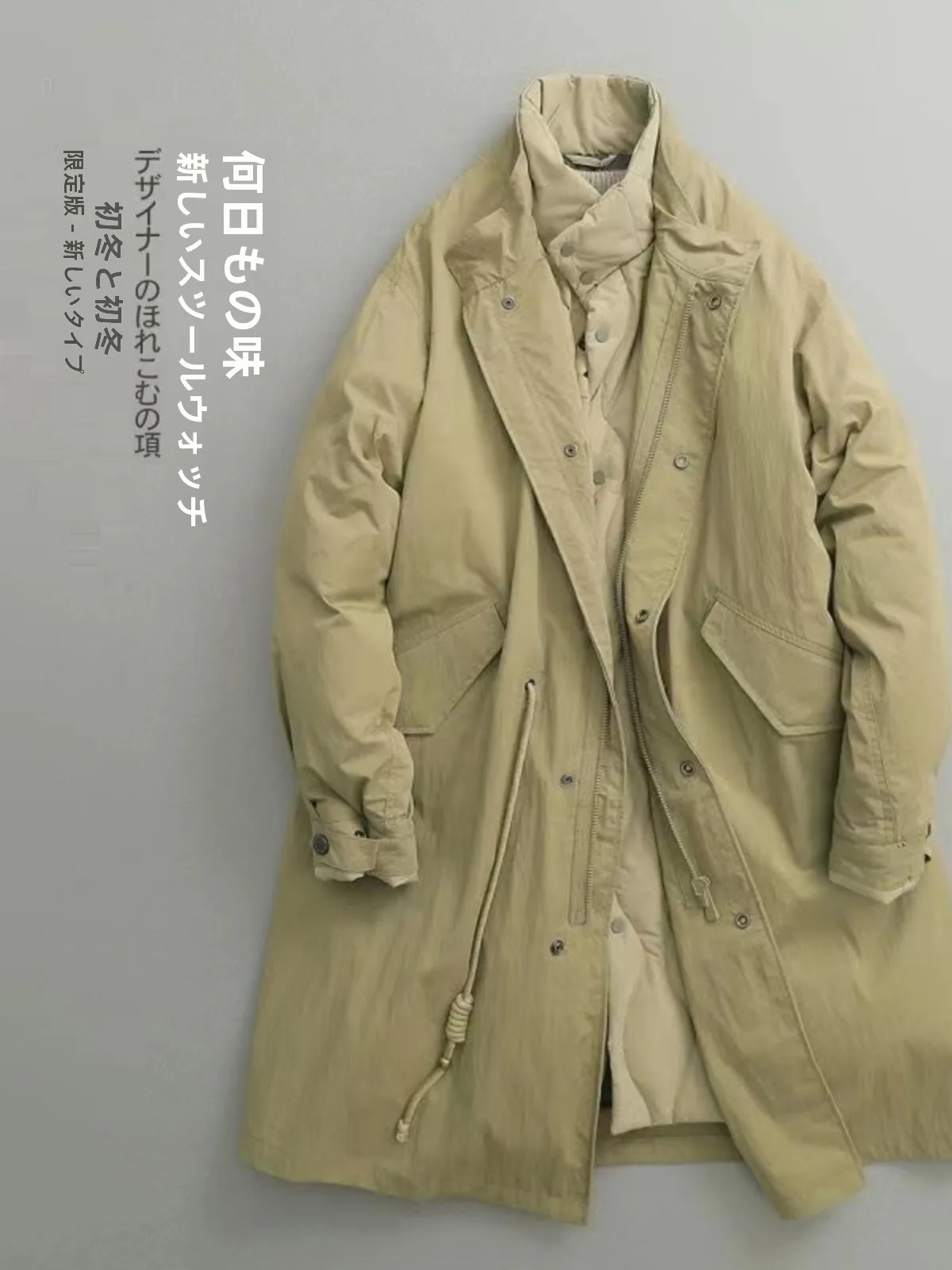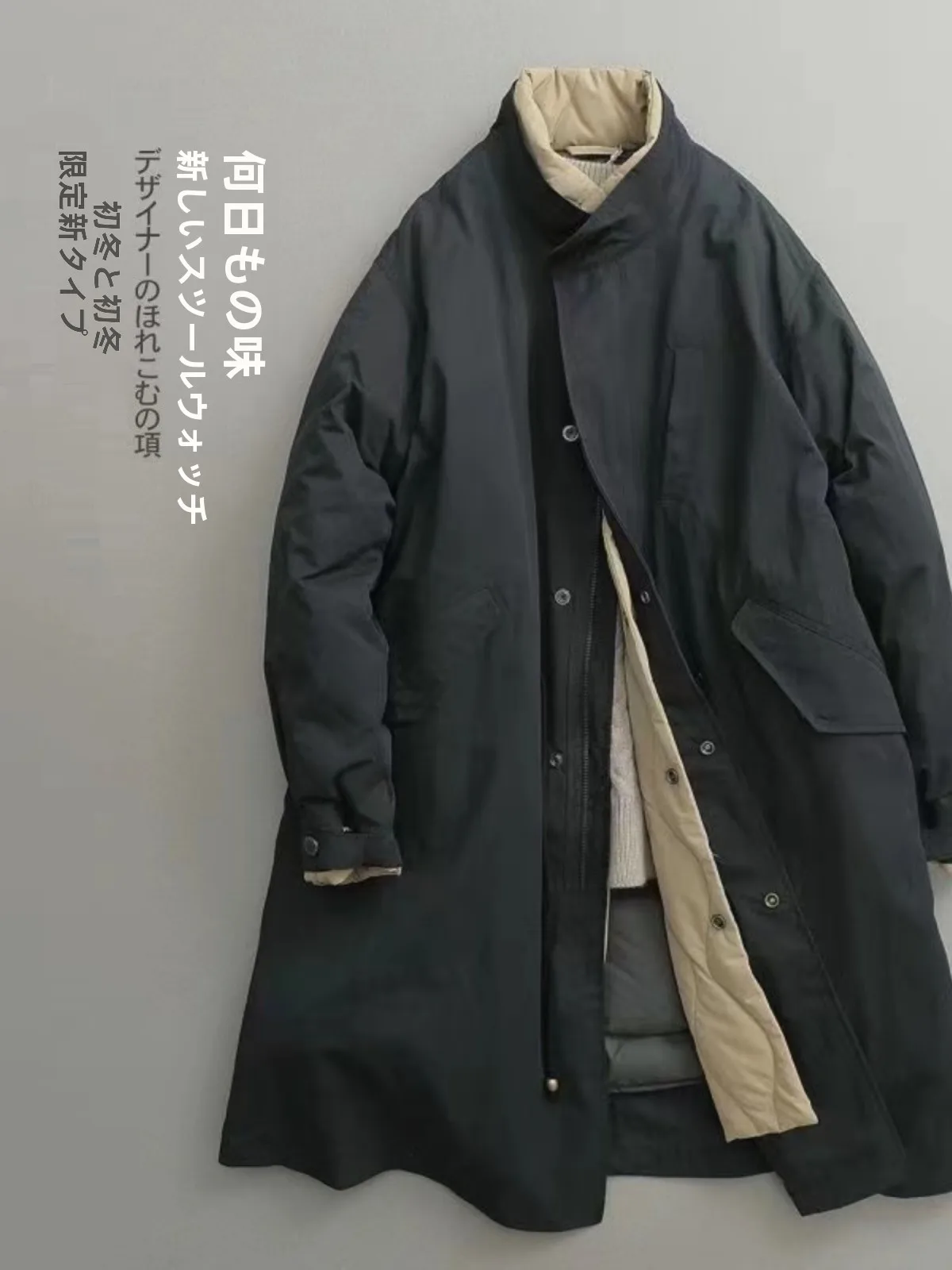 秋冬新スタイル日本レトロ裏地付きスタンドカラーミッドレングスコットンコートメンズ多用途ジャケットアウター - TopDealBox