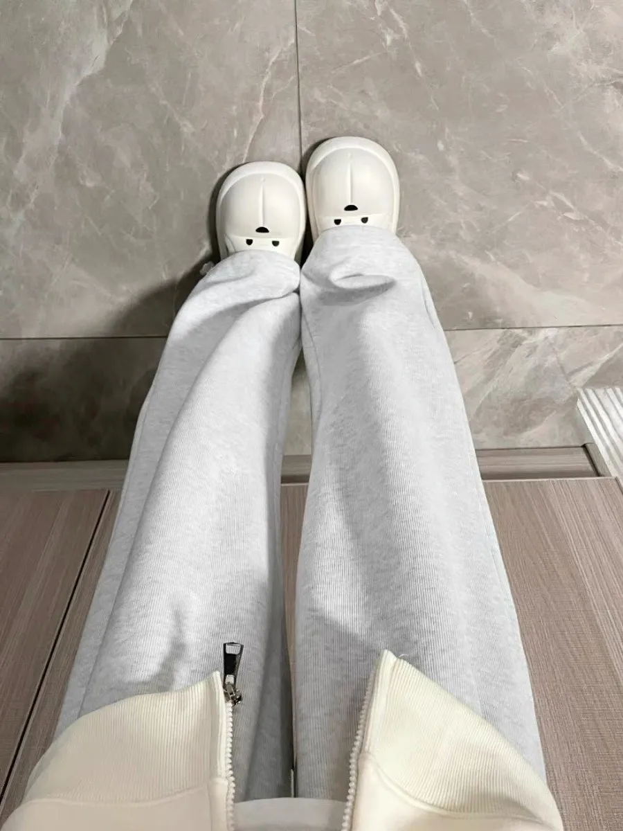 グレーハイウエストドレープルーズカジュアルワイドレッグパンツ女性のスポーツパンツ春秋の新スタイル痩身ストレートレッグ - TopDealBox
