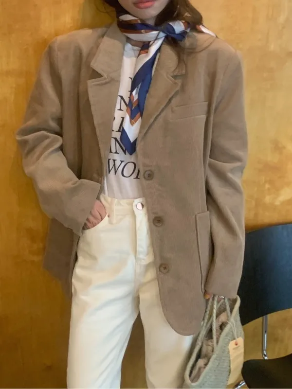 アメリカンレトロコーデュロイシングルボタンポロカラーカジュアルスーツジャケットルーズフィットシックなスタイル女性のための秋冬ファッション - TopDealBox