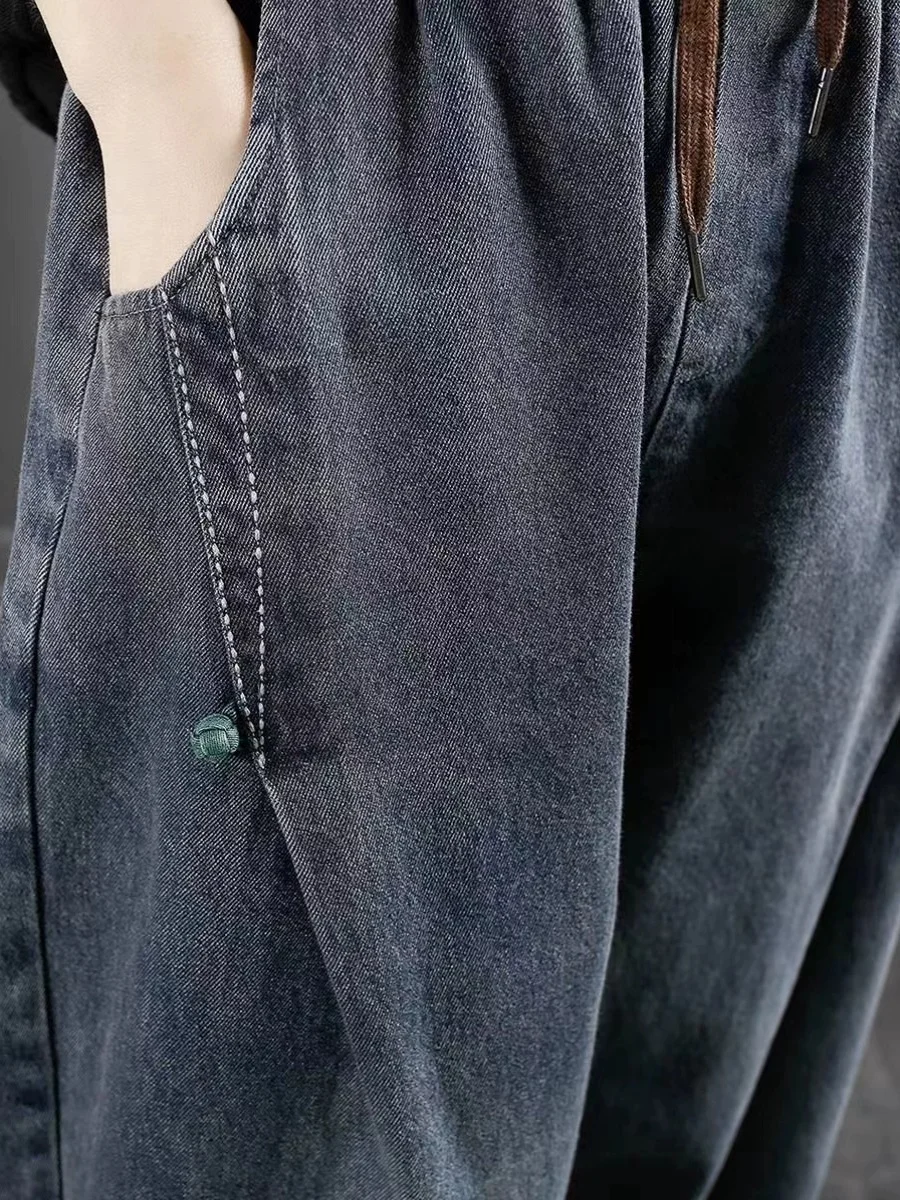 ♡Quick viewプラスサイズハイウエストフリース裏地ストレートレッグジーンズ女性のためのトレンディなコンクリートグレールーズフィットドレープワイドレッグドラッグパンツ1338 JPYHot★★★★★4.1
