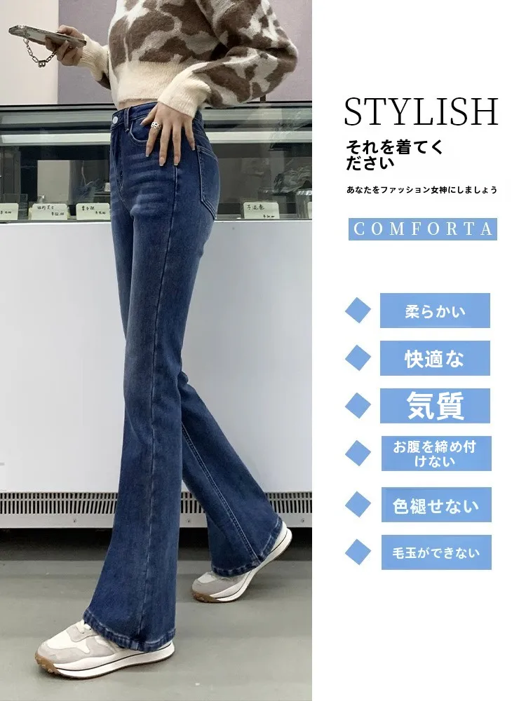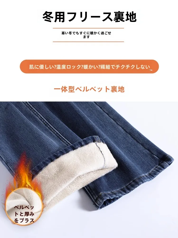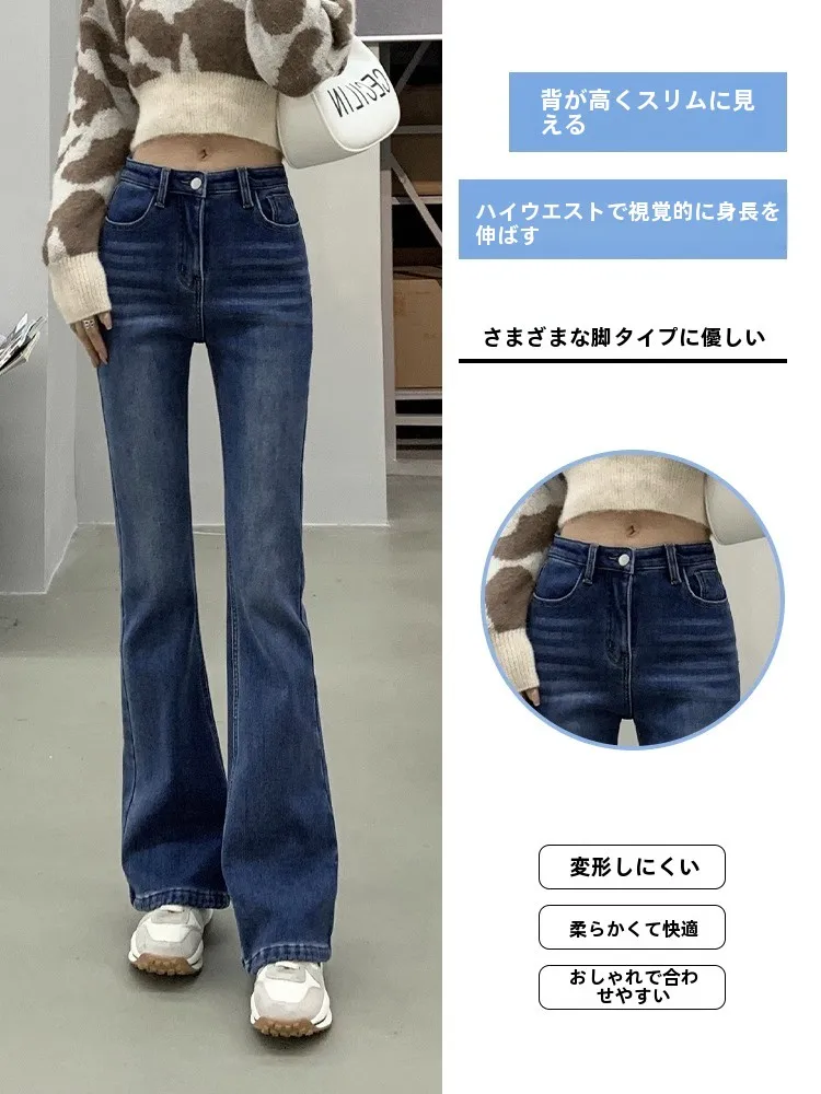 ハイウエストフリース裏地ブーツカットジーンズ女性厚く暖かい痩身小型ベルボトムパンツ綿ストレッチデニムブルージーンズ - TopDealBox