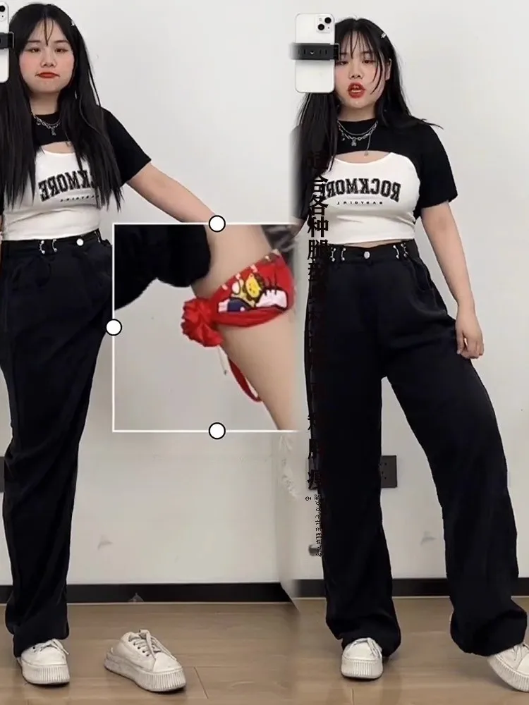 黒ワイドレッグデニムジーンズ女性ルーズフィットヒップカバー洋ナシ形ボディ痩身春の新プラスサイズカジュアルストレートレッグパンツ - TopDealBox
