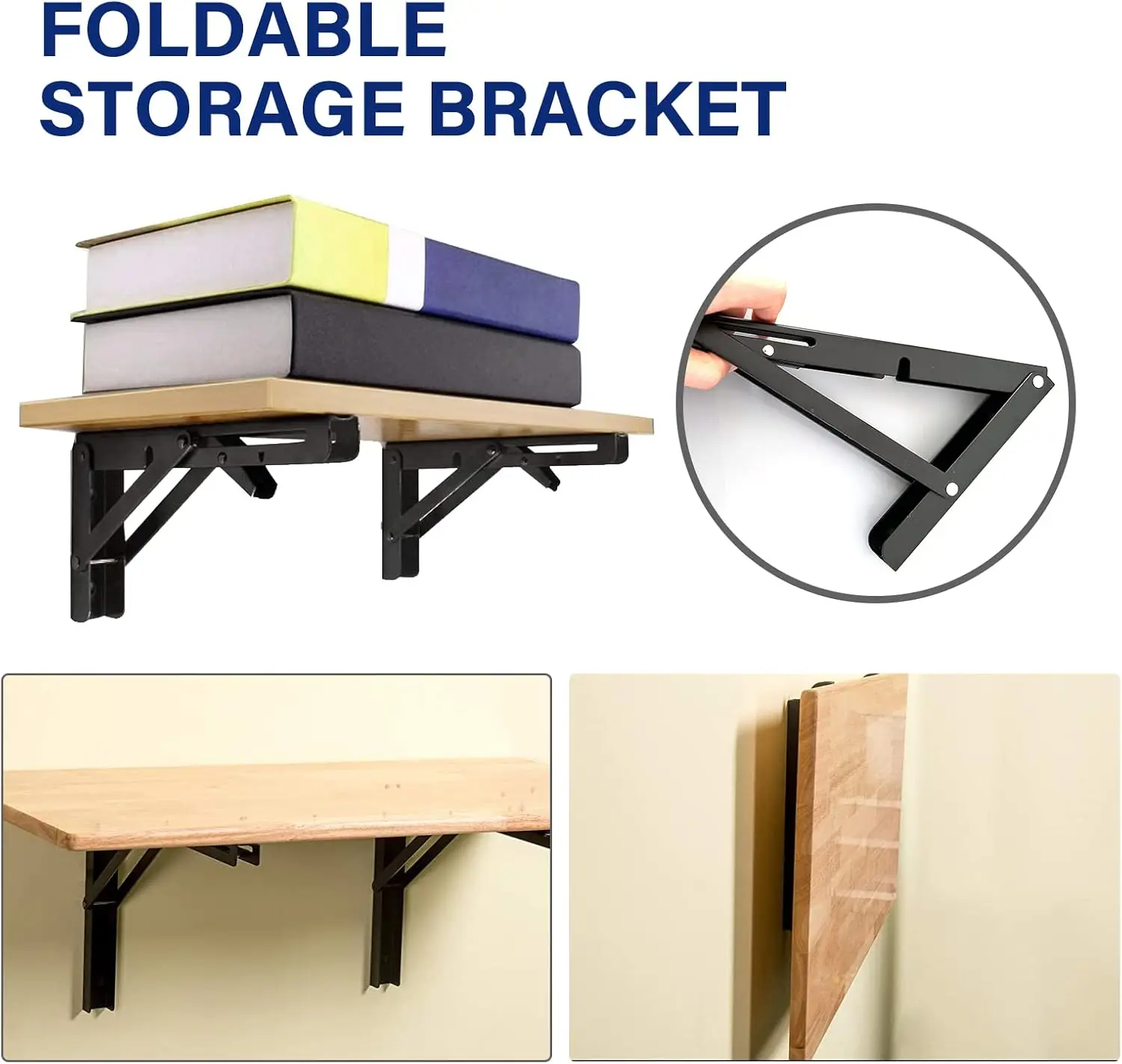 頑丈な折りたたみ式三角形棚受け金具 – ステンレススチール製壁掛けサポート、省スペースで折りたたんで平らに、錆びにくい