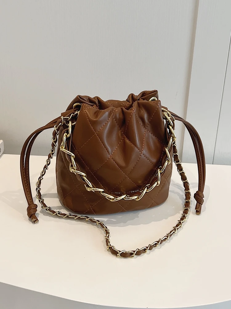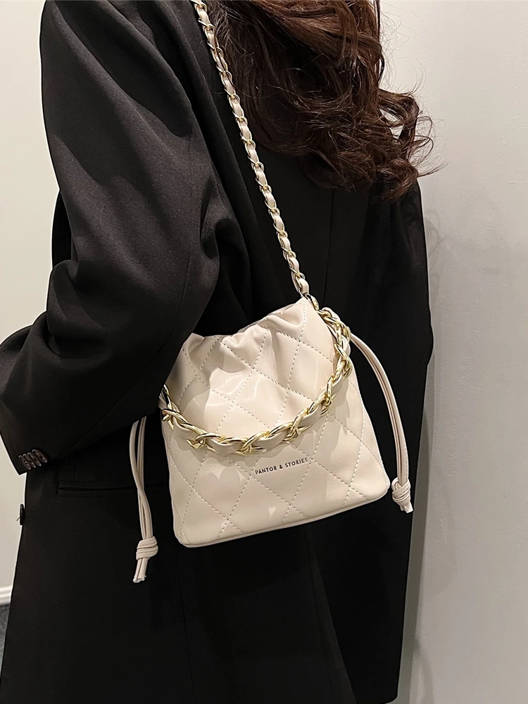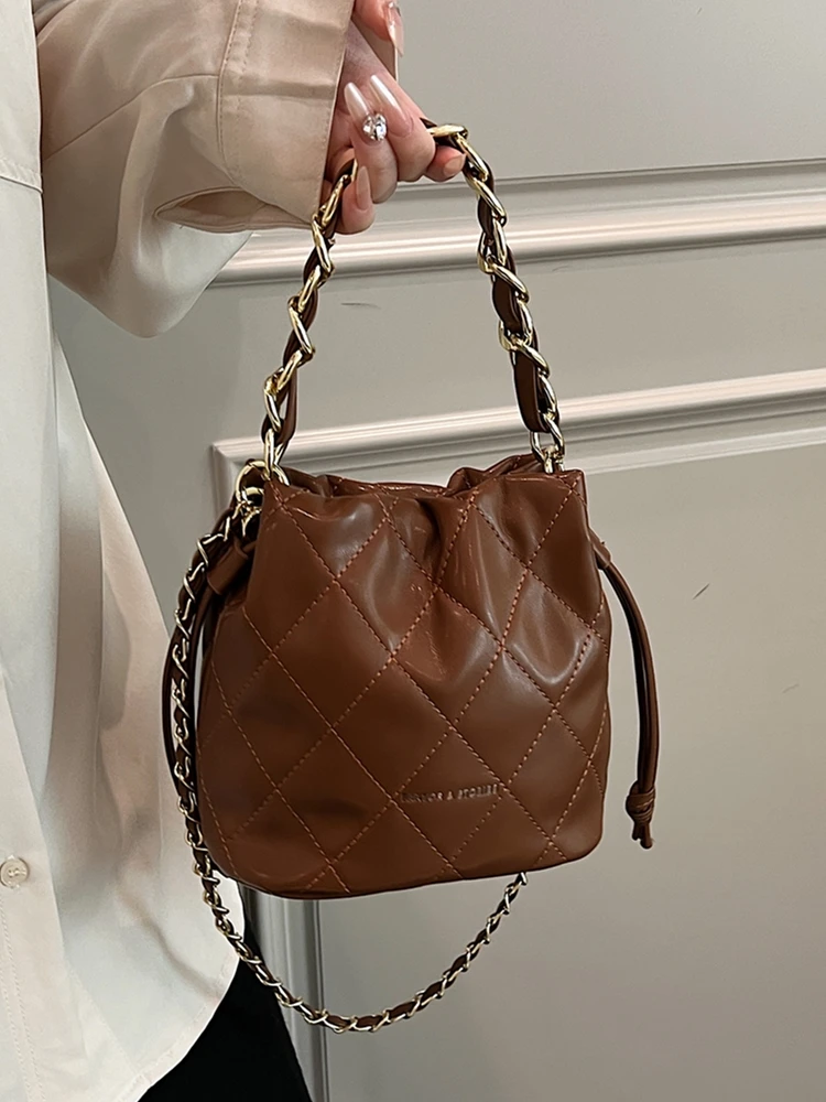 ファッショナブルなキルティングチェーンショルダーバッグ小さなバケットバッグカジュアル巾着レジャーシングルショルダーバッグトレンディな小さなバッグ - TopDealBox