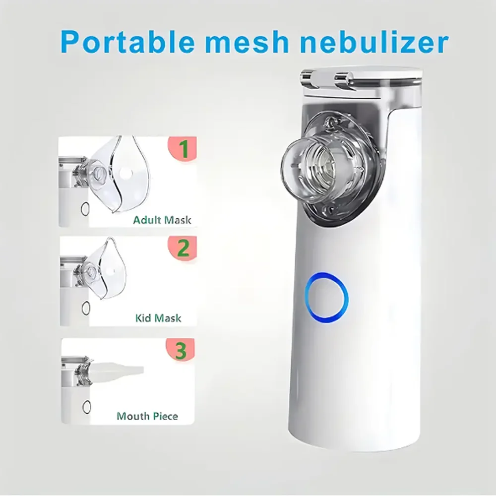 ミニネブライザー ハンドヘルド ポータブル アトマイザー 医療用 静音吸入器 咳喘息加湿器 大人用 子供用 マスク充電式ネブライザー - TopDealBox