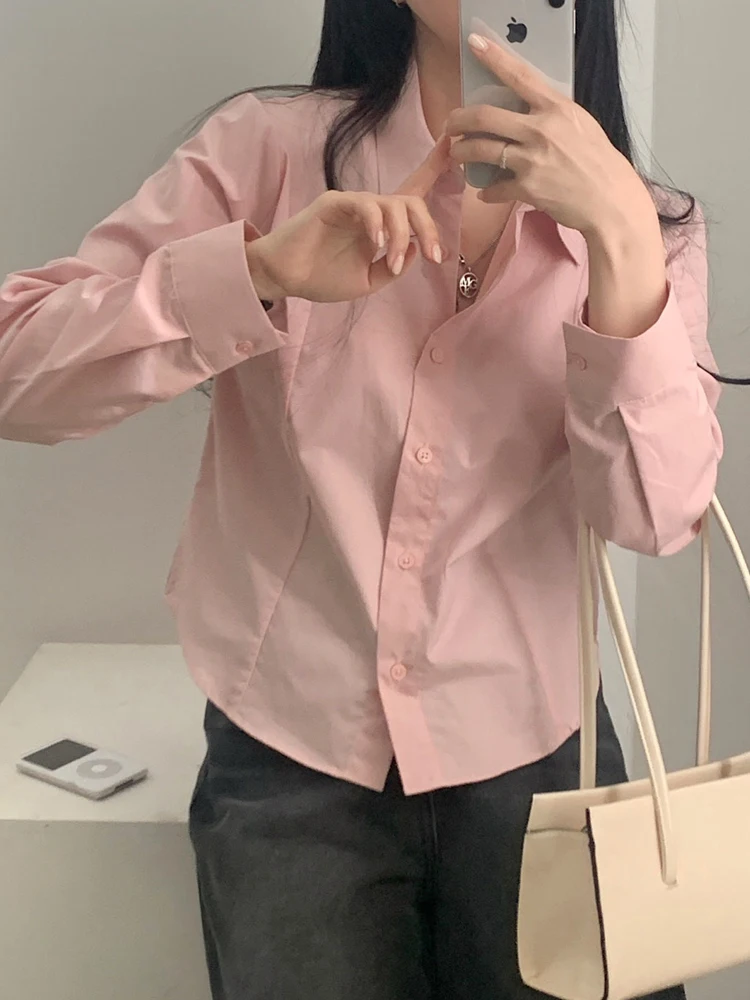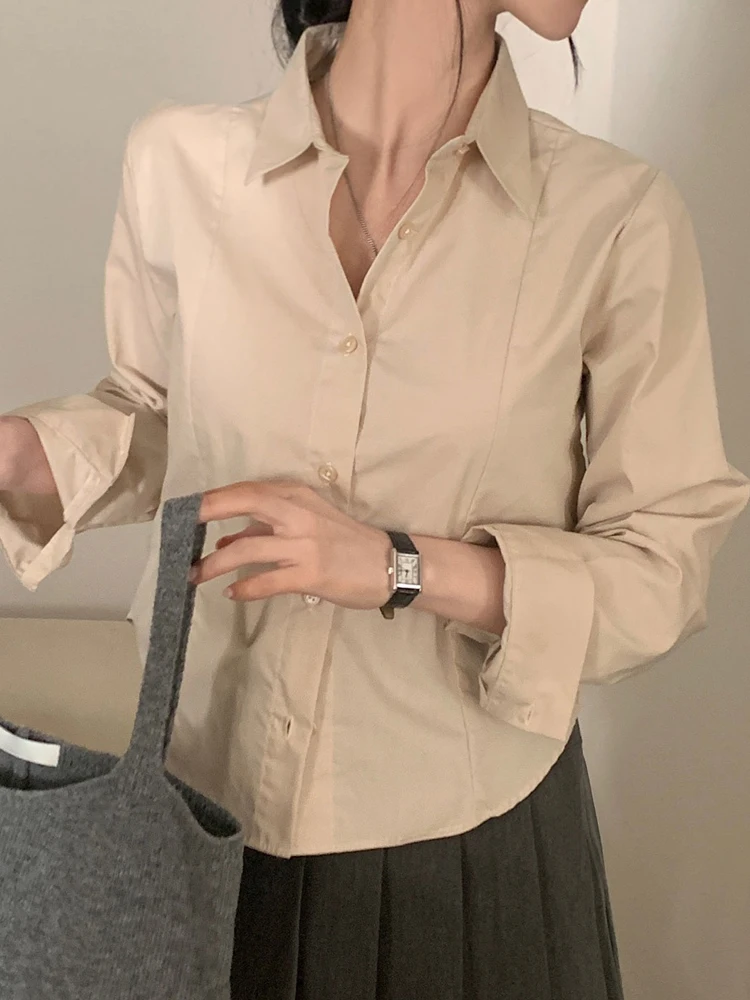 シックな白シャツレディースレトロターンダウンカラー長袖シングルボタンエレガントな高級感トップ韓国スタイルルーズフィット - TopDealBox