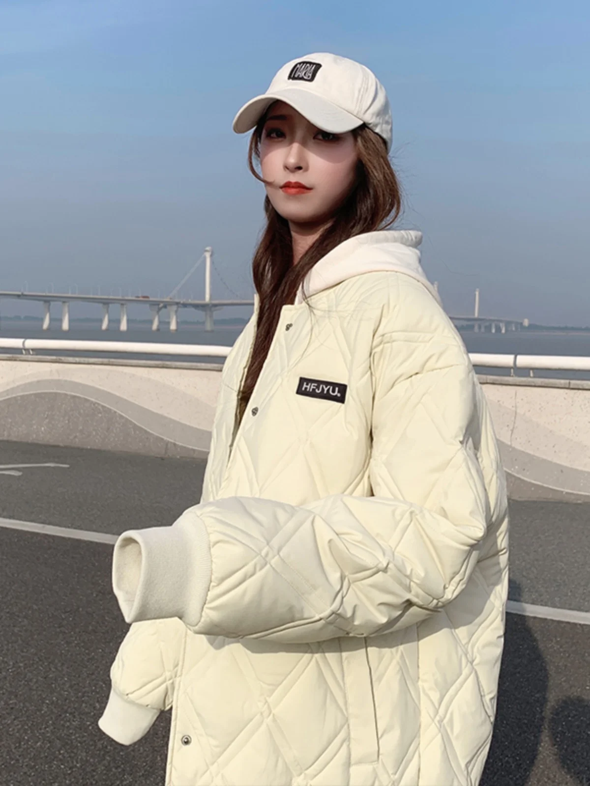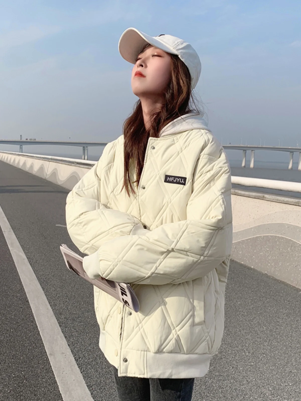 韓国スタイルの女性のダウンコットンジャケットキルティング野球ベスト秋冬アウター肥厚長袖ジッパー閉鎖 - TopDealBox