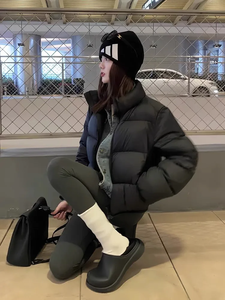ケンダルジェンナースタイルショート肥厚コットンジャケット女性のパン韓国語バージョン通勤ポリエステル繊維ジッパー閉鎖ピュアカラー - TopDealBox