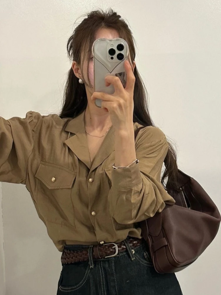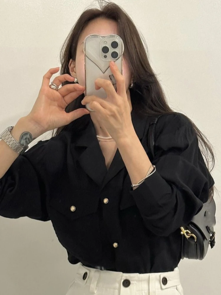 ヴィンテージスタイルルーズフィット女性のシャツ秋シーズンフレンチスタイル長袖カジュアルトップエレガントな人格スーツの襟デザイン - TopDealBox