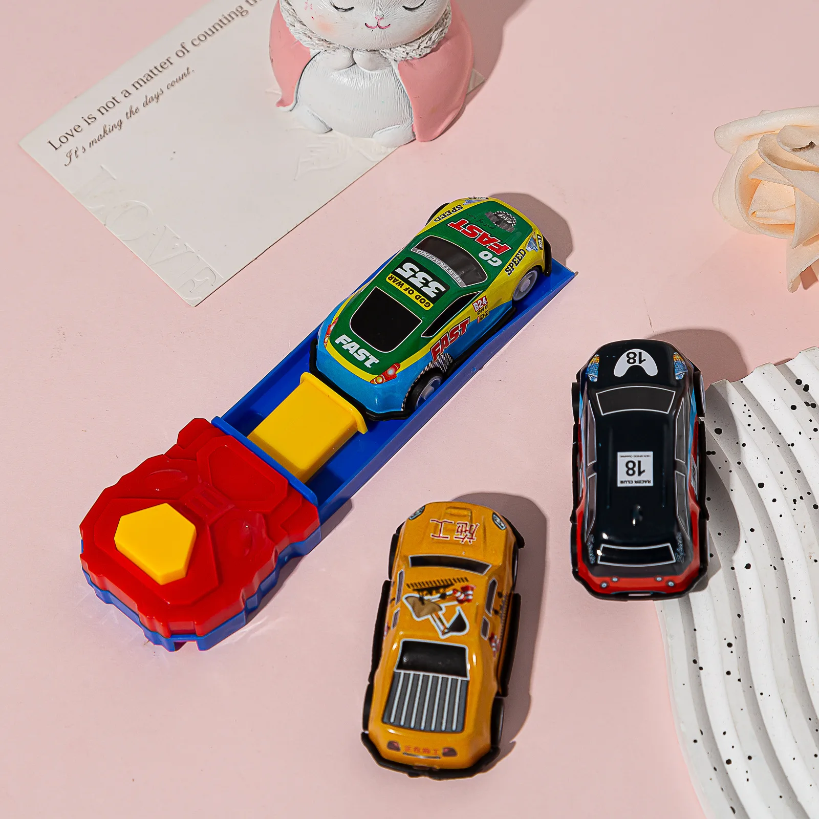トラックカタパルト付きレーシングカーモデル,子供用エジェクター,プルバック,漫画カー,子供用おもちゃセット,ギフト - TopDealBox