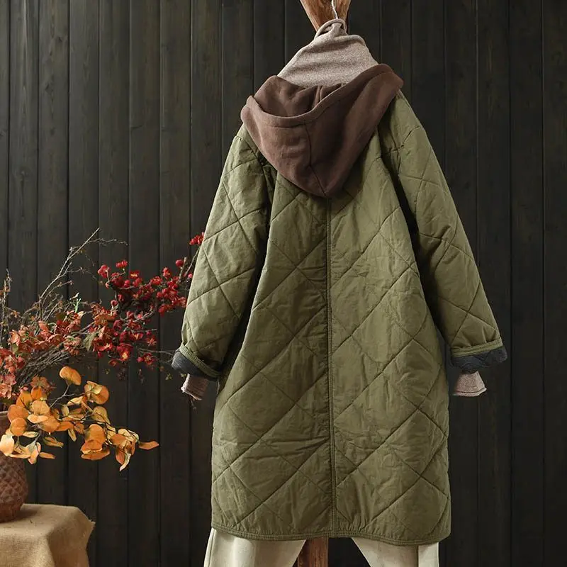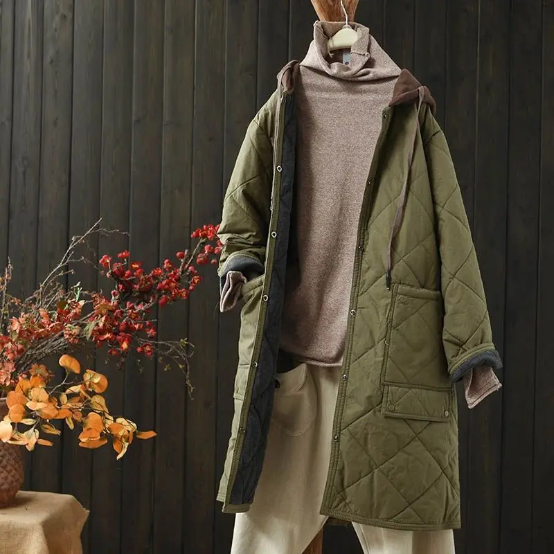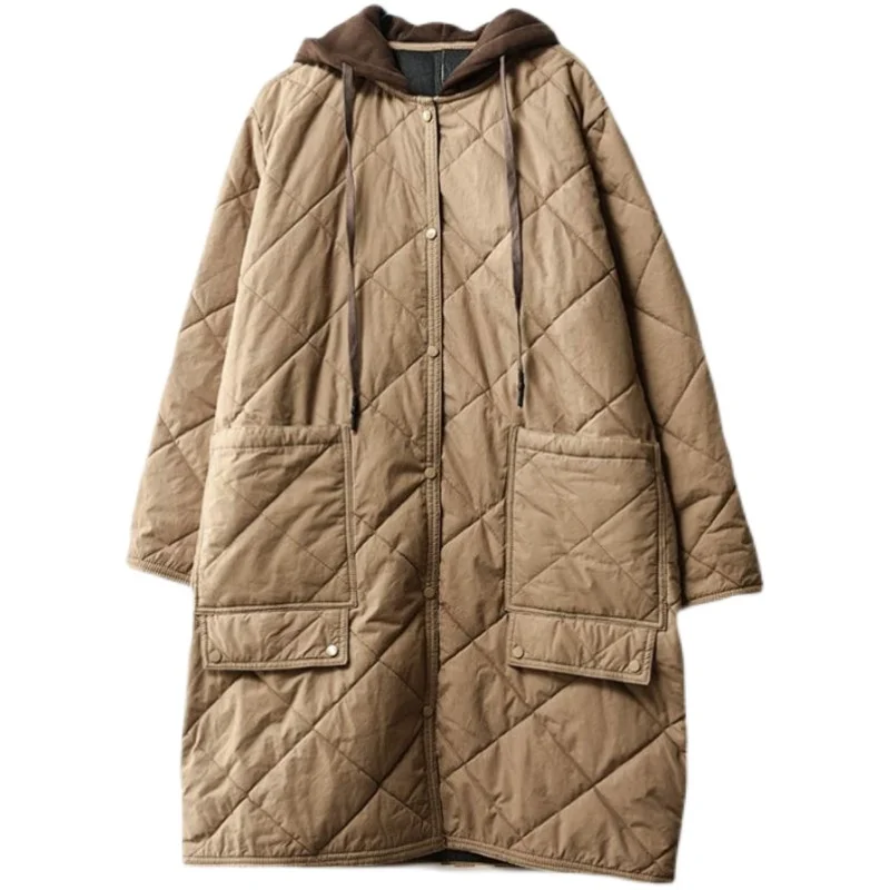 肥厚コットン冬ジャケット巾着フード付きミッドレングスコート暖かい綿服カジュアル通勤スタイルルーズフィット長袖 - TopDealBox