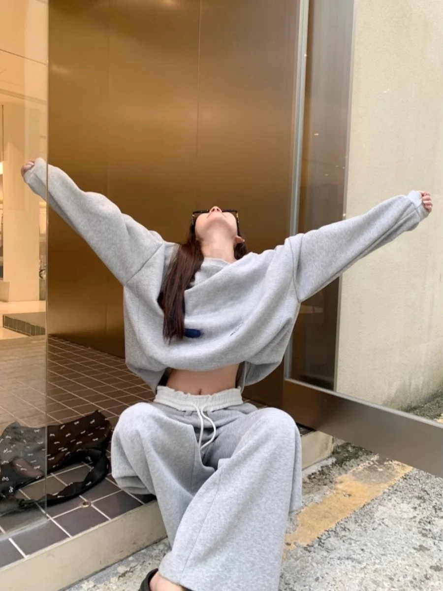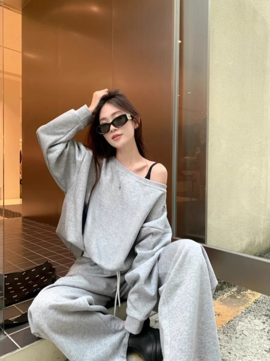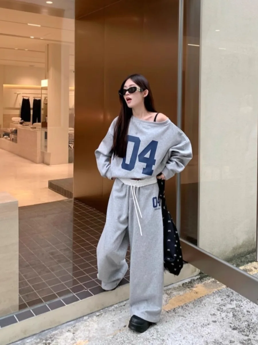レトロスポーティプリント長袖女性の衣装ハイウエストドレープパンツツーピースセット秋のファッションカジュアル快適 - TopDealBox