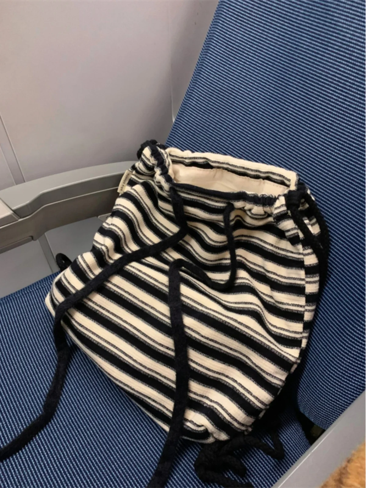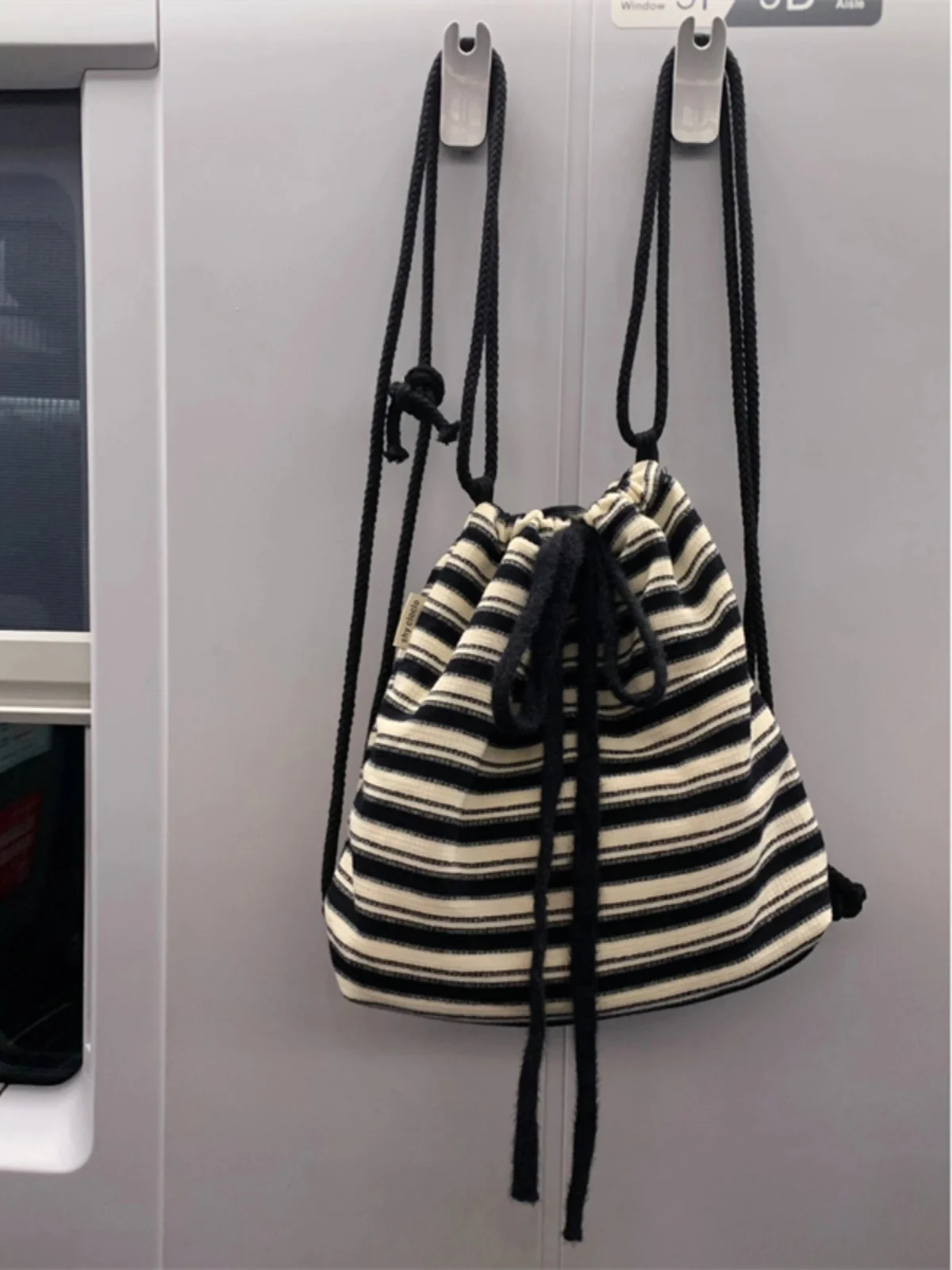 大容量ストライプニットキャンバスバックパック怠惰なスタイルファッショナブルなダブルショルダーバッグ春夏新作スクールバッグ - TopDealBox