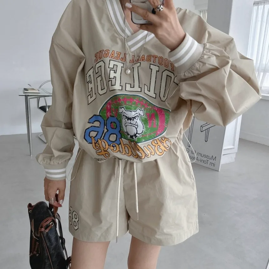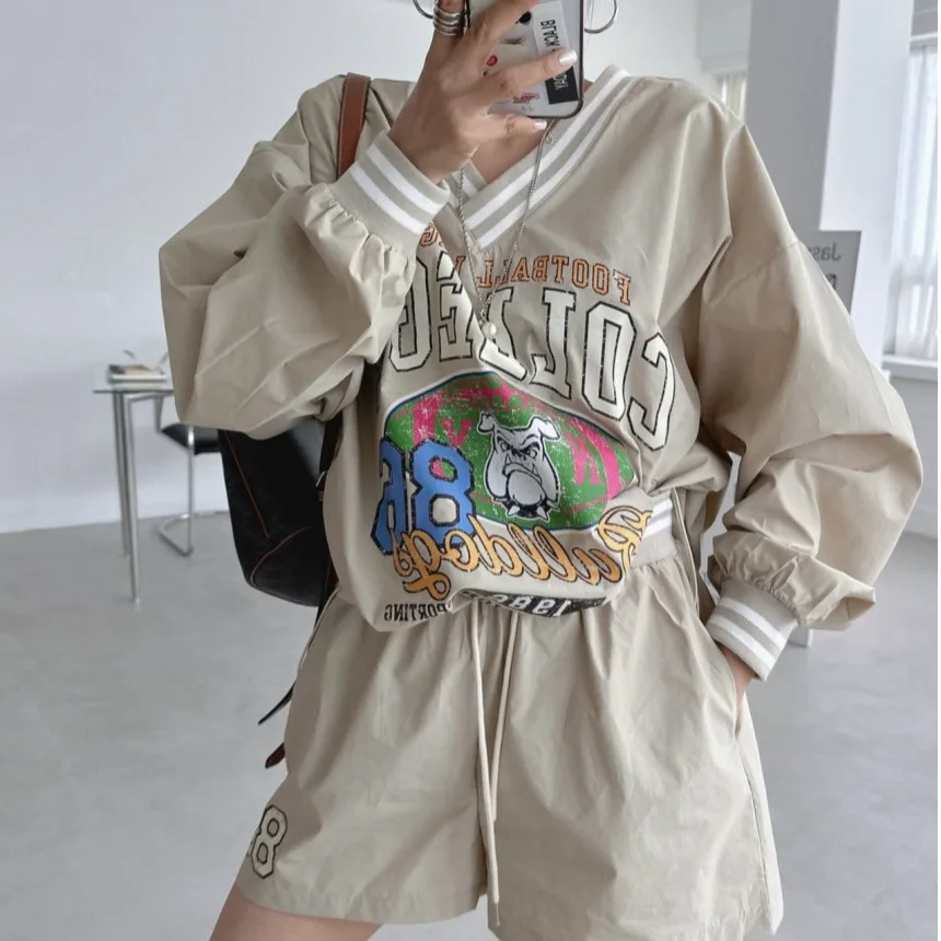 シックな長袖漫画レタープリント巾着パーカーレディースファッションセットルーズワイドレッグショーツアンチエイジング秋スタイル - TopDealBox