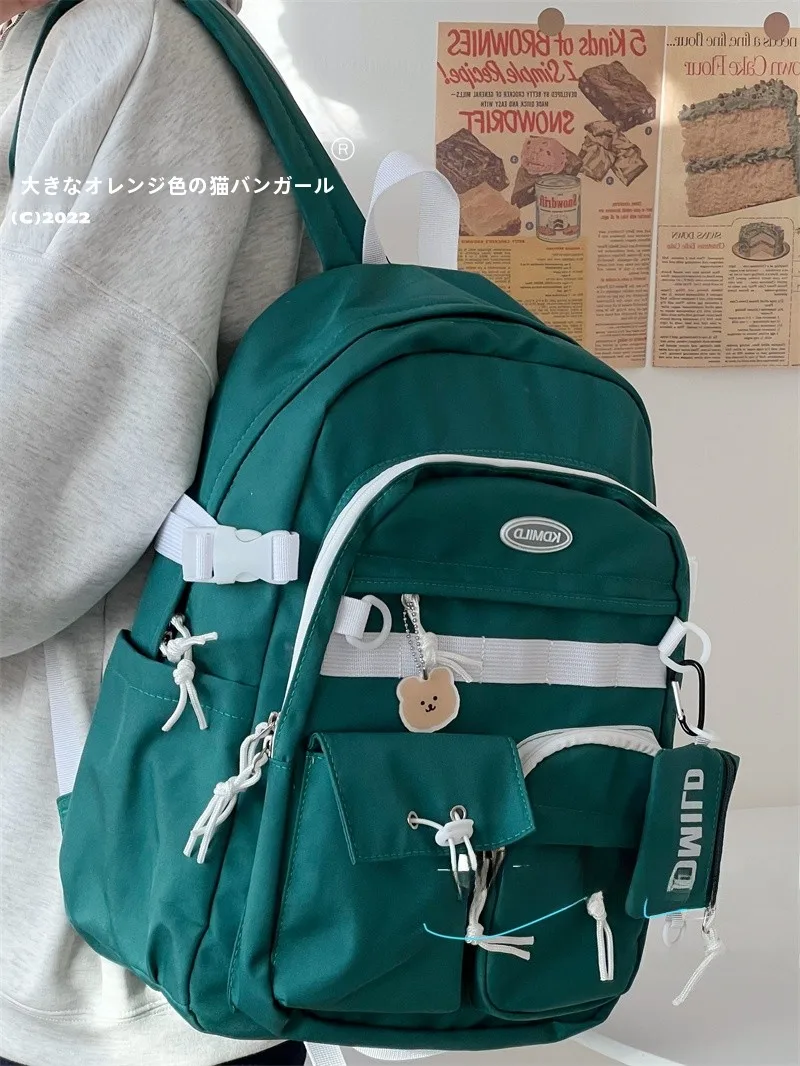 ユニセックス大容量バックパック韓国スタイルレジャートラベルショルダーバッグ二層ジッパー開閉ソフトナイロン生地バックパック - TopDealBox