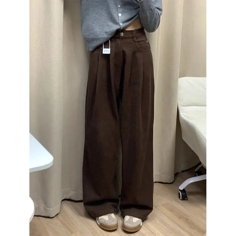 ♡Quick viewプラスサイズハイウエストフリース裏地ストレートレッグジーンズ女性のためのトレンディなコンクリートグレールーズフィットドレープワイドレッグドラッグパンツ1338 JPYHot★★★★★4.1