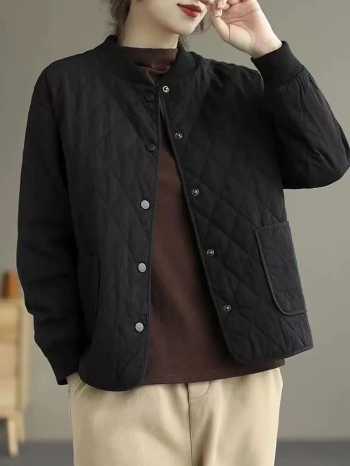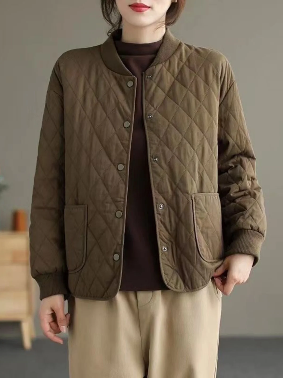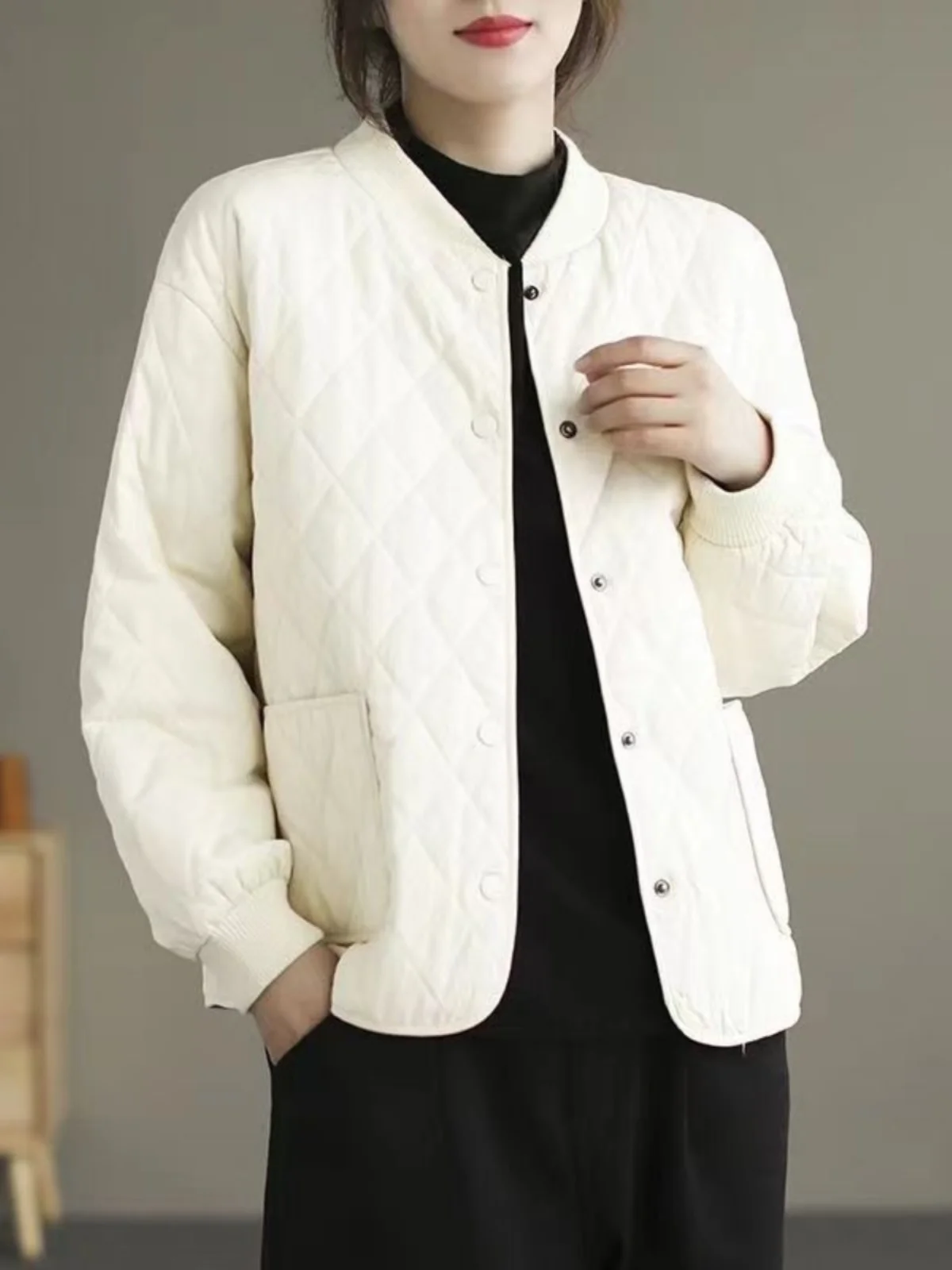 女性のコットンジャケット軽量ショートキルティングベスト秋冬ダイヤモンドパターンママの服ピュアカラーアウター - TopDealBox
