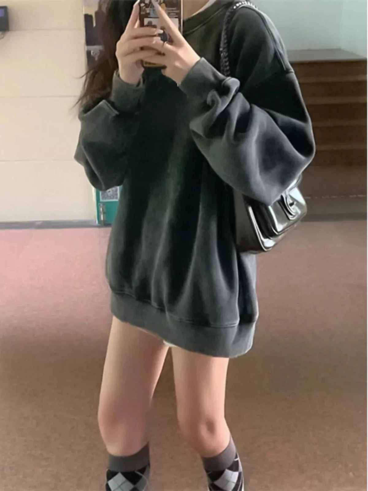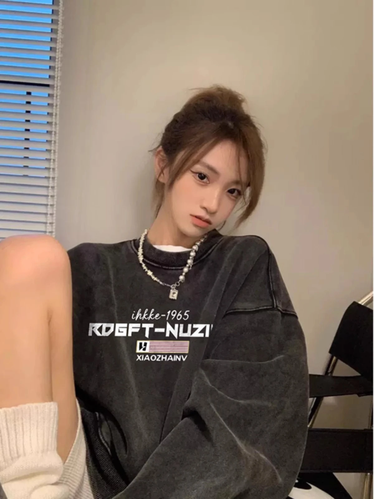 秋冬新ニッチハイストリートトレンディレタープリントラウンドネックプルオーバー長袖トレーナー女性のアメリカンスタイル - TopDealBox