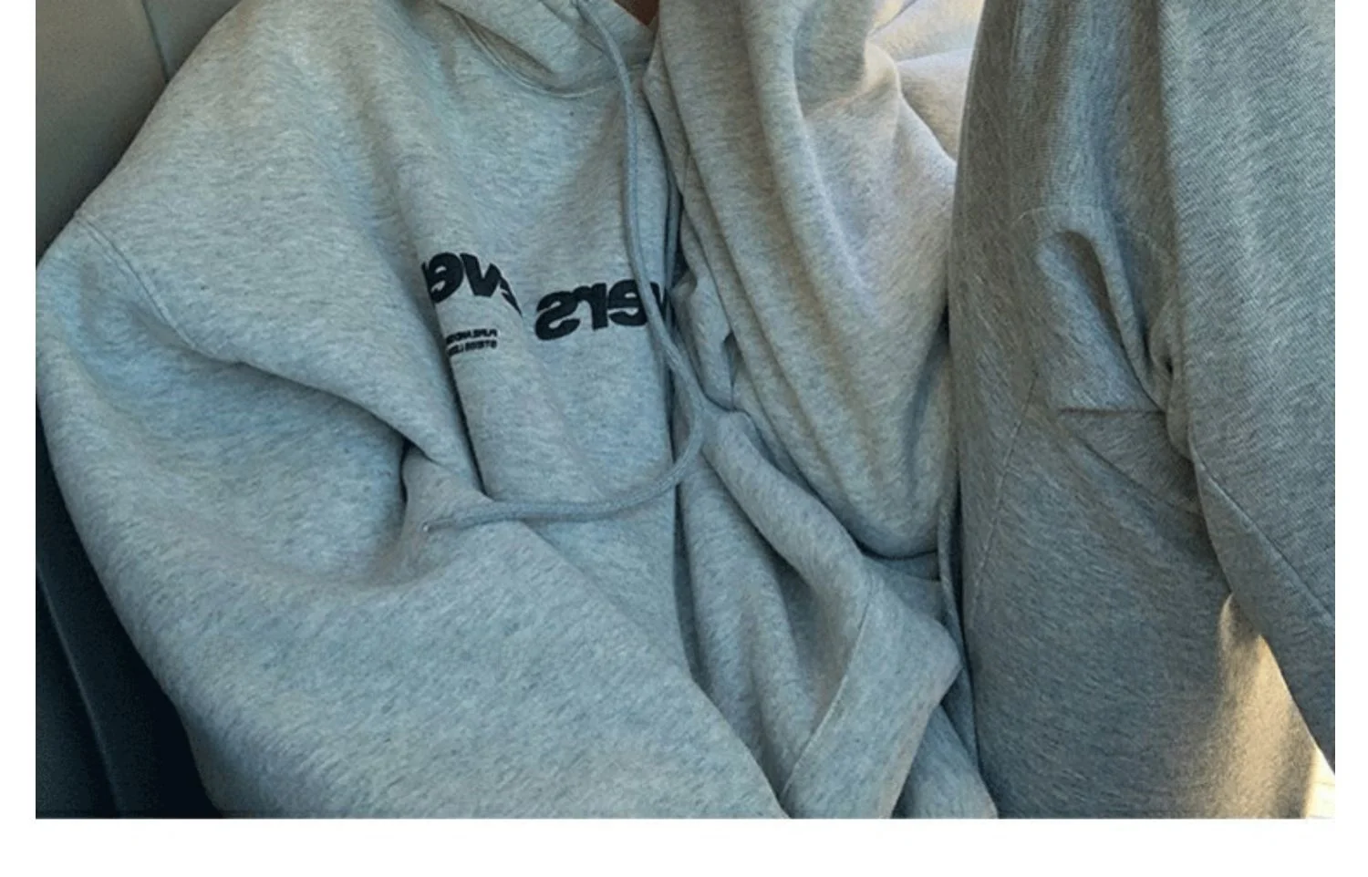 トレンディなオーバーサイズフリース裏地パーカー女性のルーズフィットカップルの秋冬コート韓国スタイル長袖プリントカジュアルトレーナー - TopDealBox
