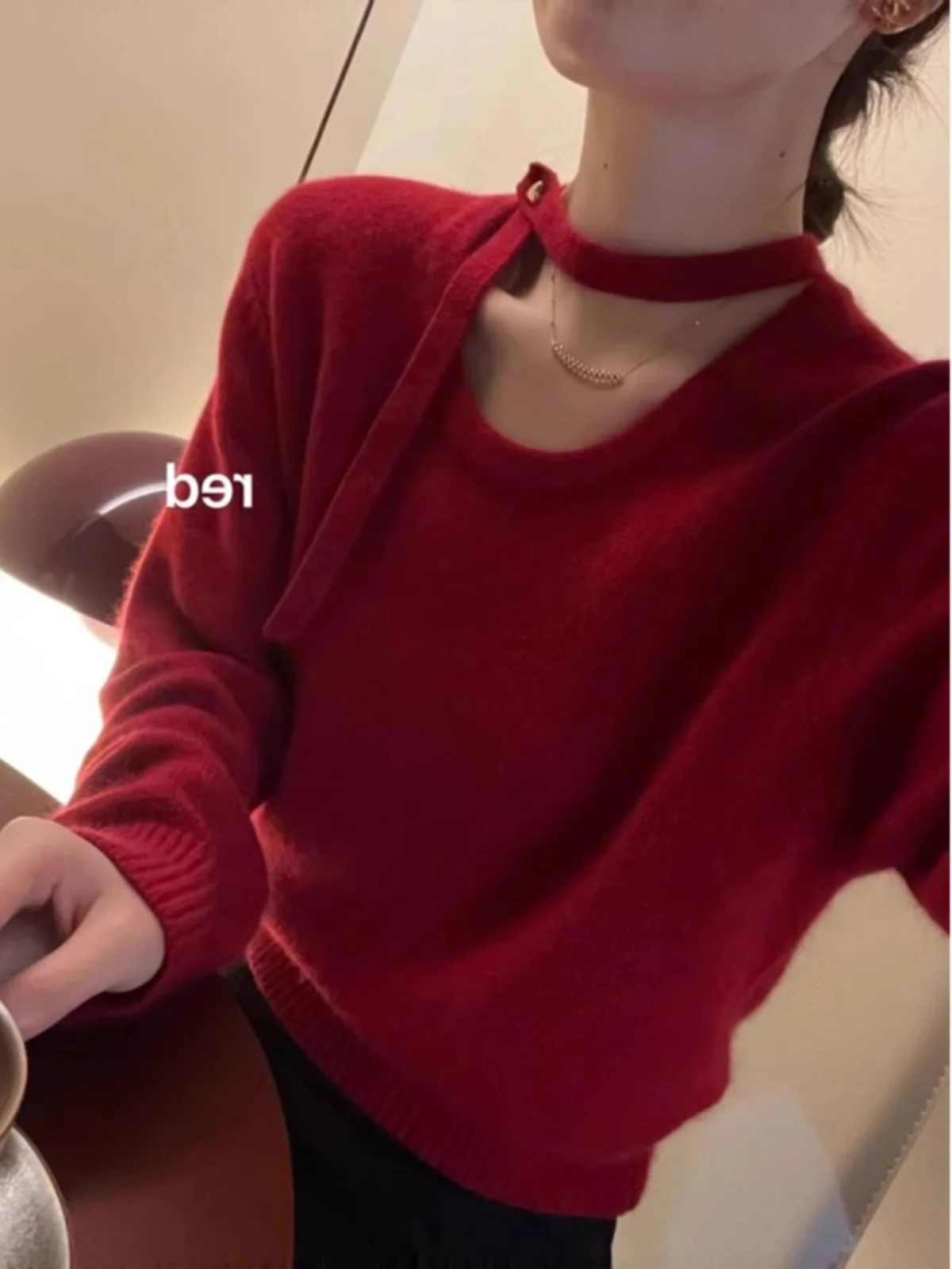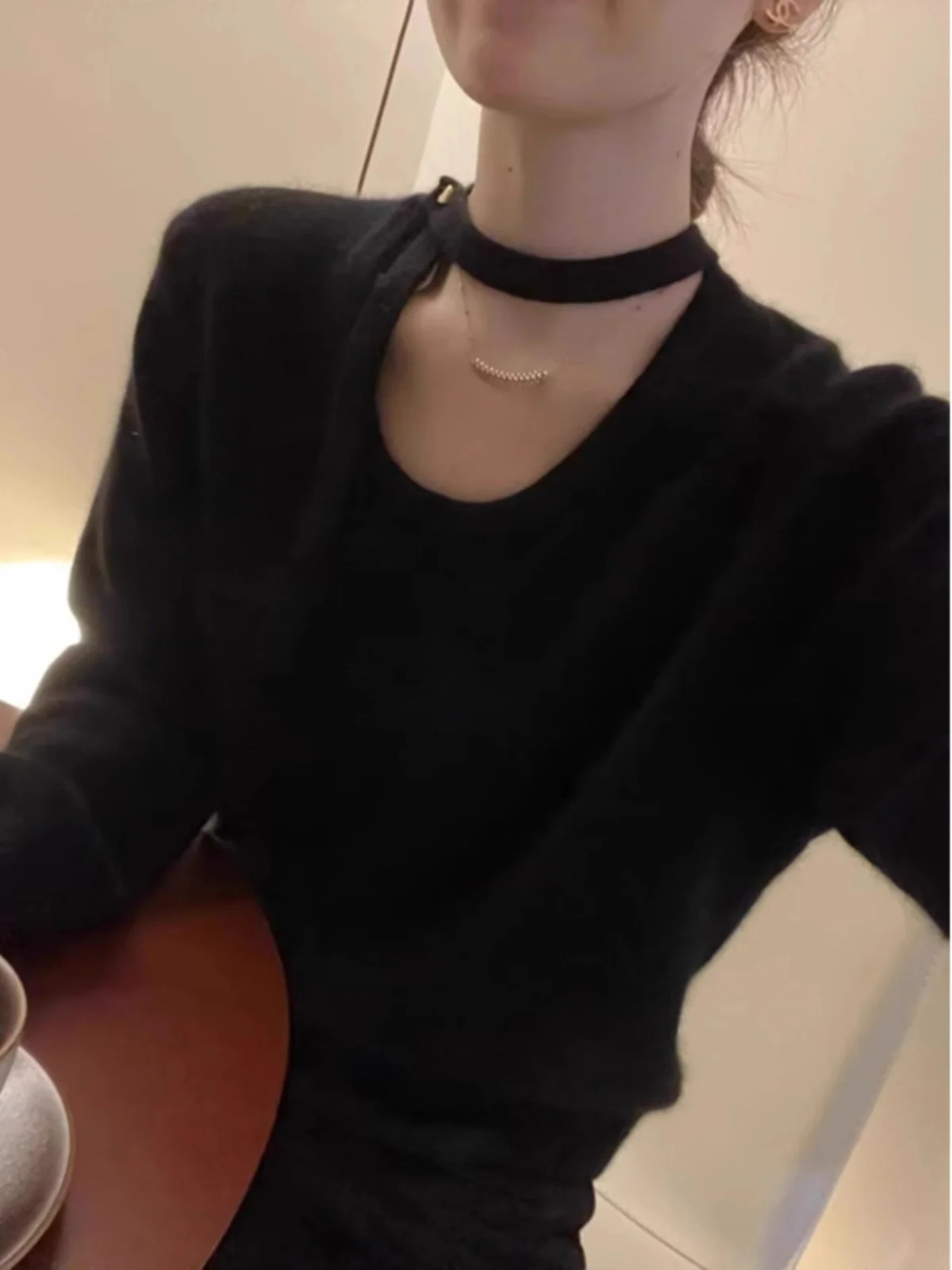 グレーニットセーター女性の春秋チョーカーサッシュファッションインナーウェアベーストップトレンディシャツハーフハイカラー長袖 - TopDealBox