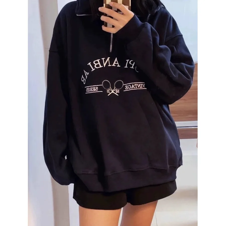 アメリカンスタイルレトロポロカラートレーナージャケット女性の新しい初秋オーバーサイズ小さいサイズ長袖トップ - TopDealBox