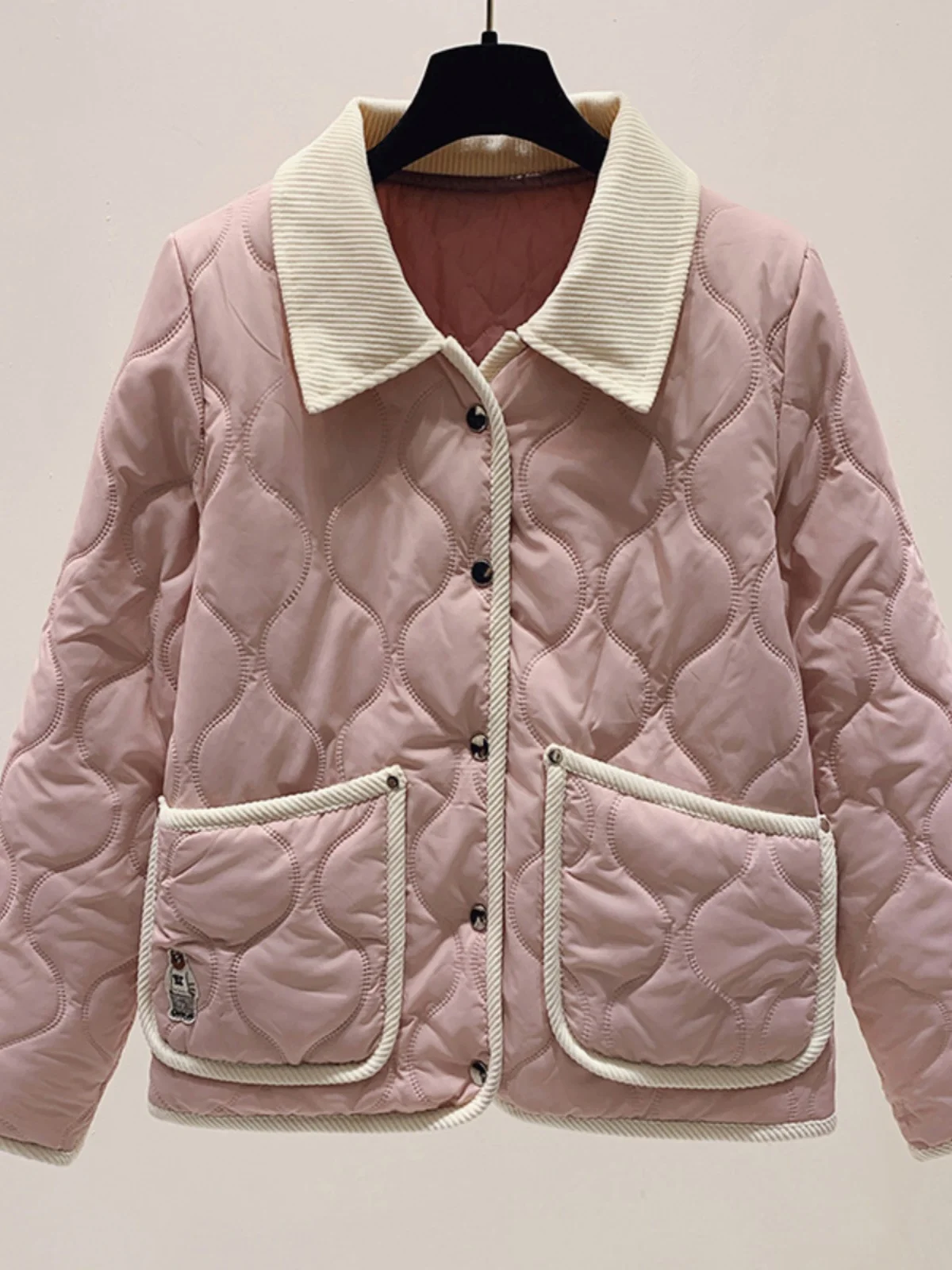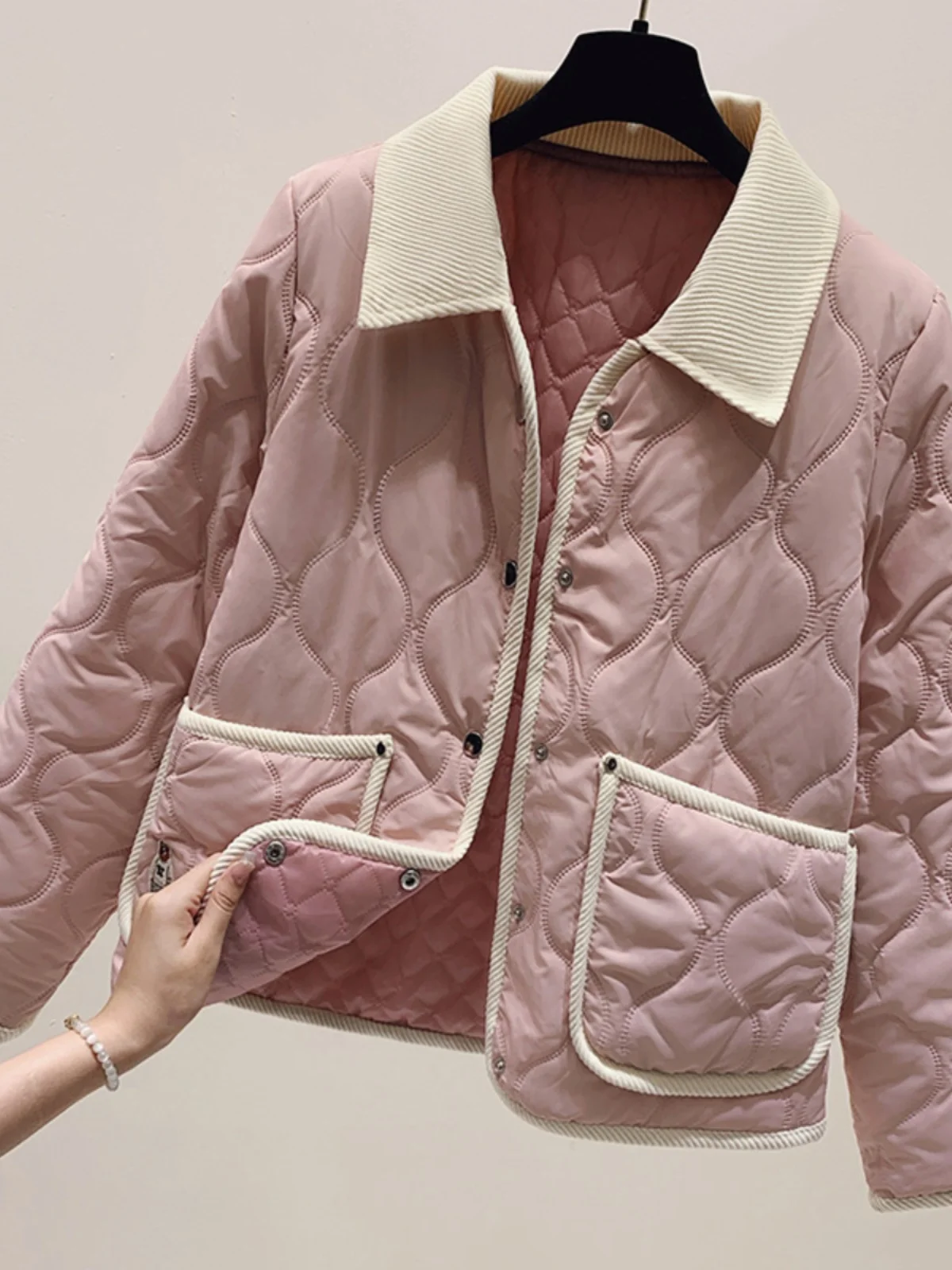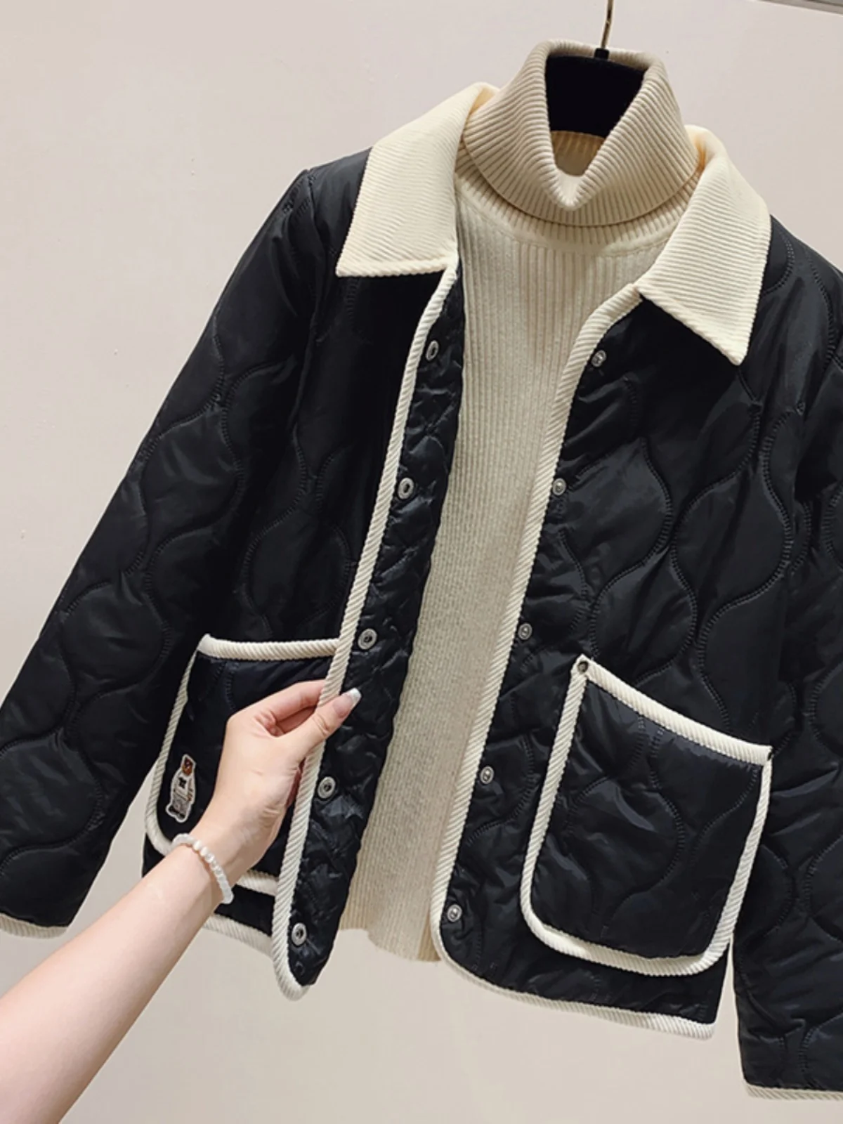 韓国スタイルインクマ刺繍ダイヤモンドパターンコットンジャケット女性の秋冬新緩い暖かいショートコットンコート - TopDealBox