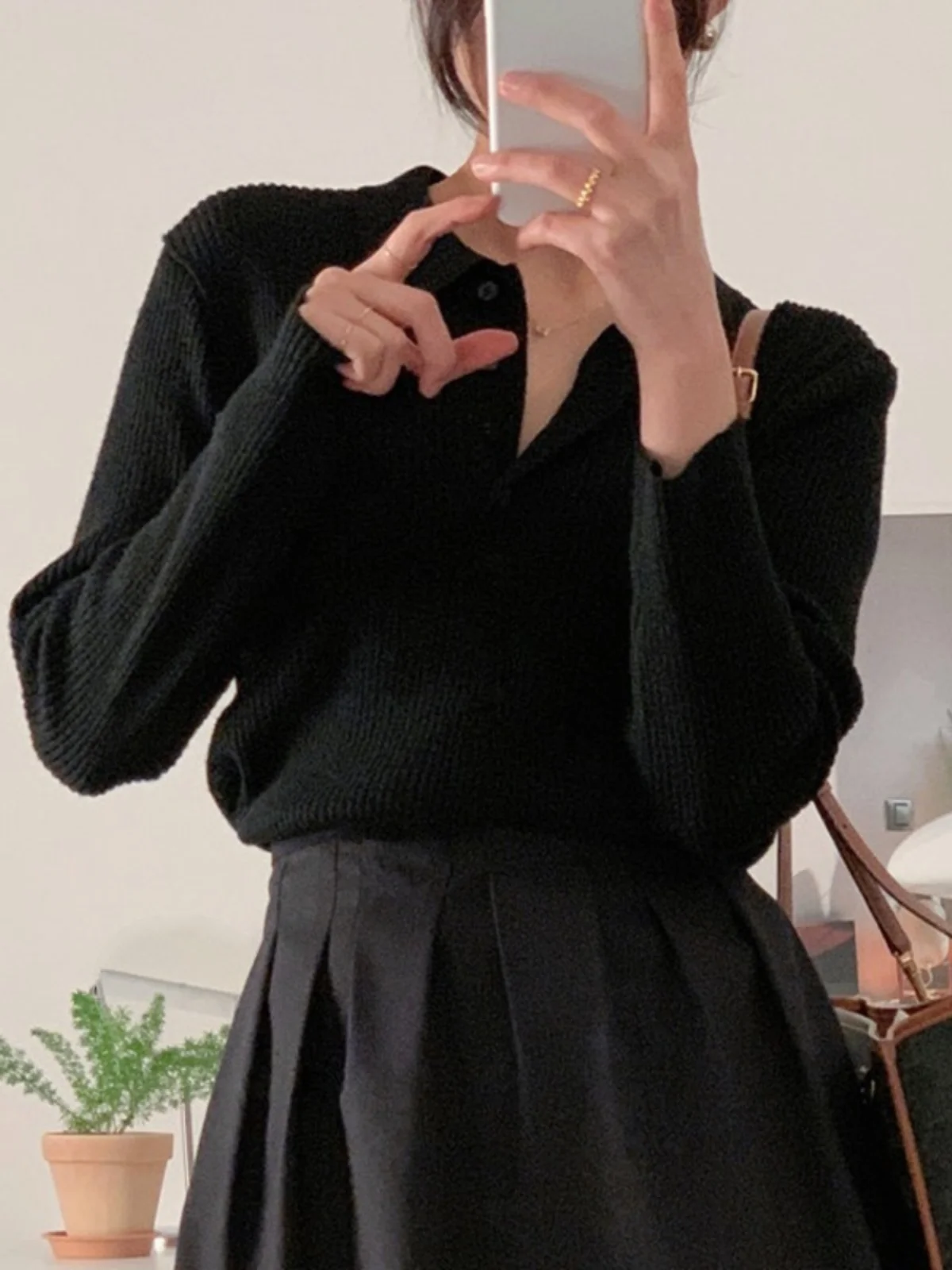 グレー怠惰なニットセーター女性のファッショナブルなレトロ襟長袖オーバーヘッドセーター初秋の新スタイルトップ韓国ルーズフィット - TopDealBox