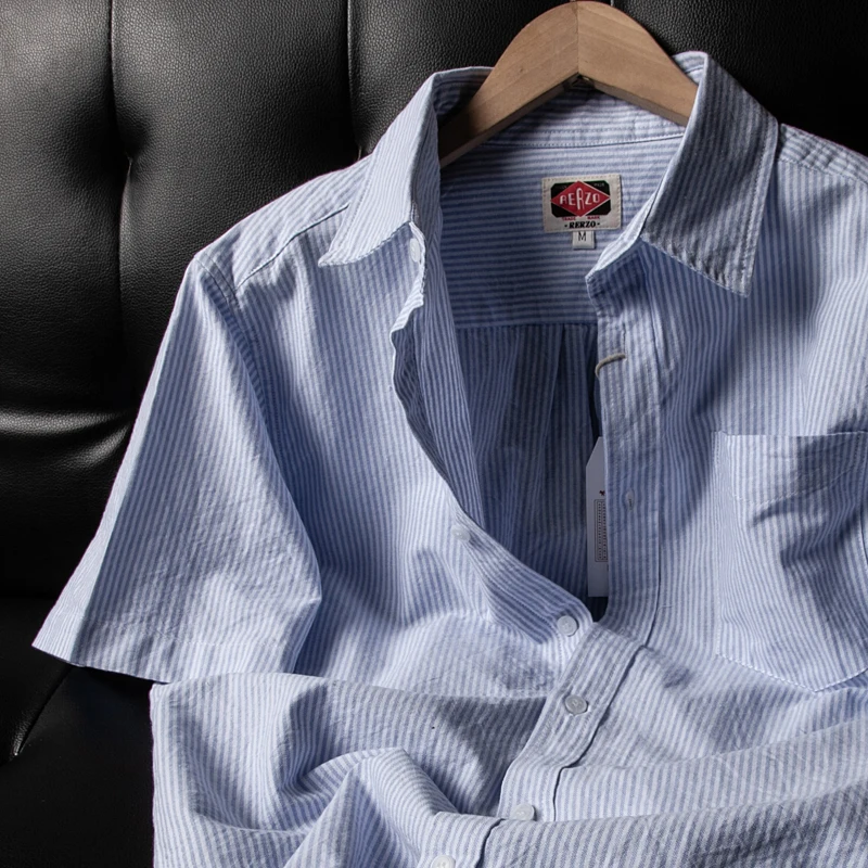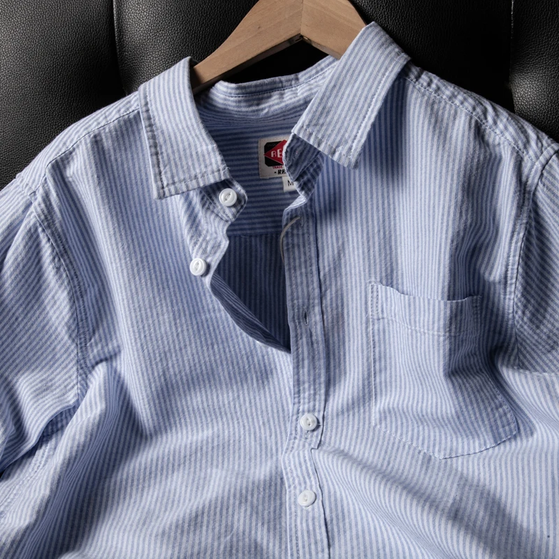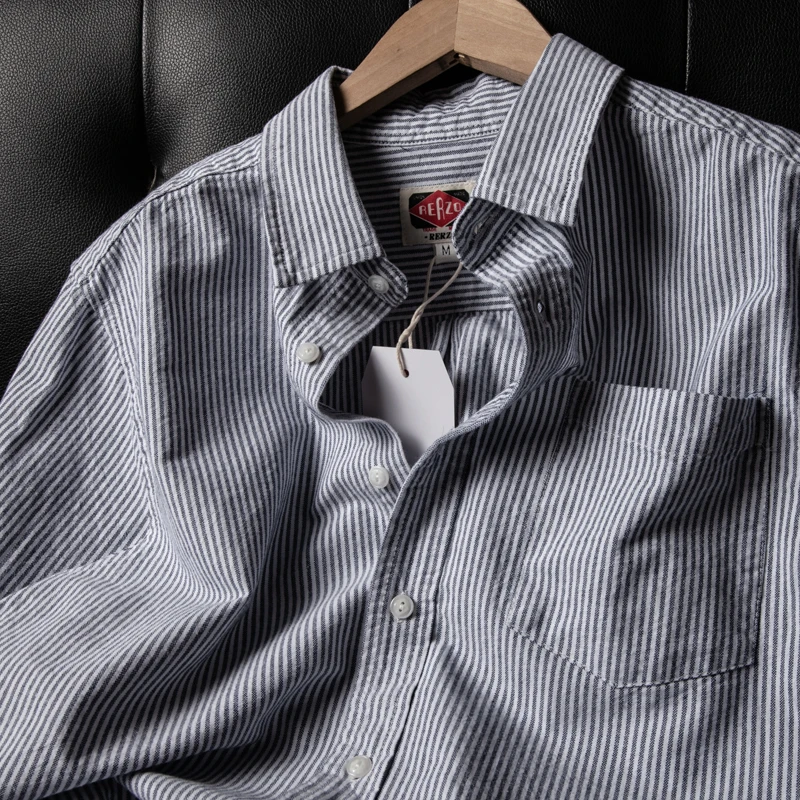 洗浄済み純綿オックスフォード生地長袖カジュアルストライプシャツ メンズ&レディース ヴィンテージ風 日本直輸入 - TopDealBox