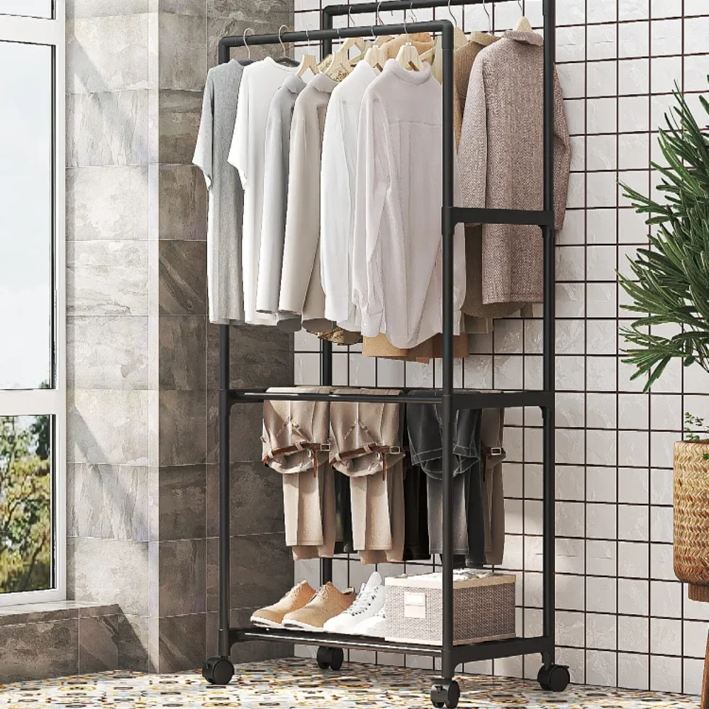 二極ハンガー,耐荷重性,床置きコートラック,シンプルな多階建てのワードローブ,移動可能なコートラック - TopDealBox