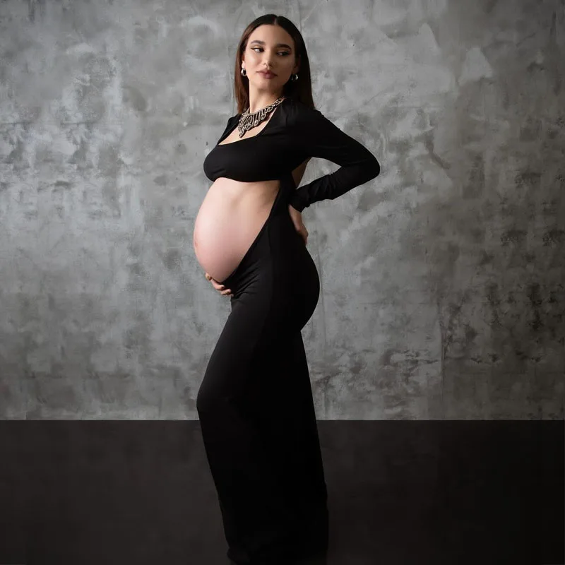 マタニティボディスーツ妊娠中長袖ストレッチセクシーなタイトなボディコン女性の写真撮影の服大きいサイズ