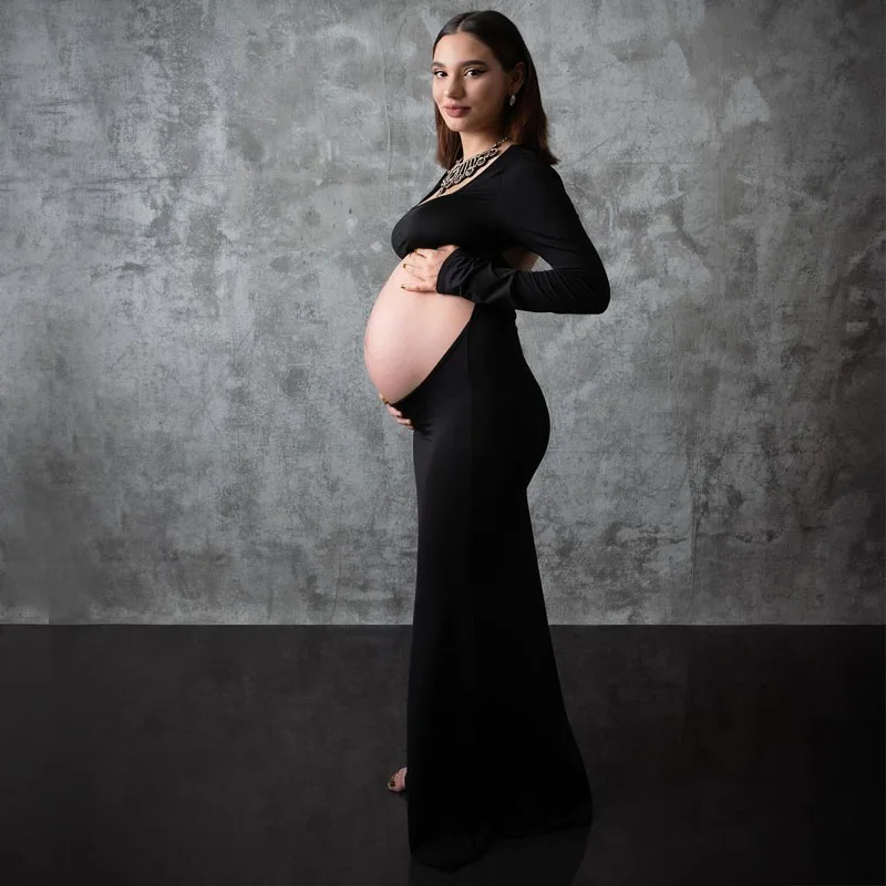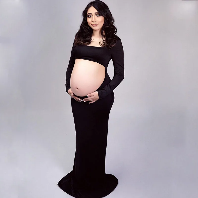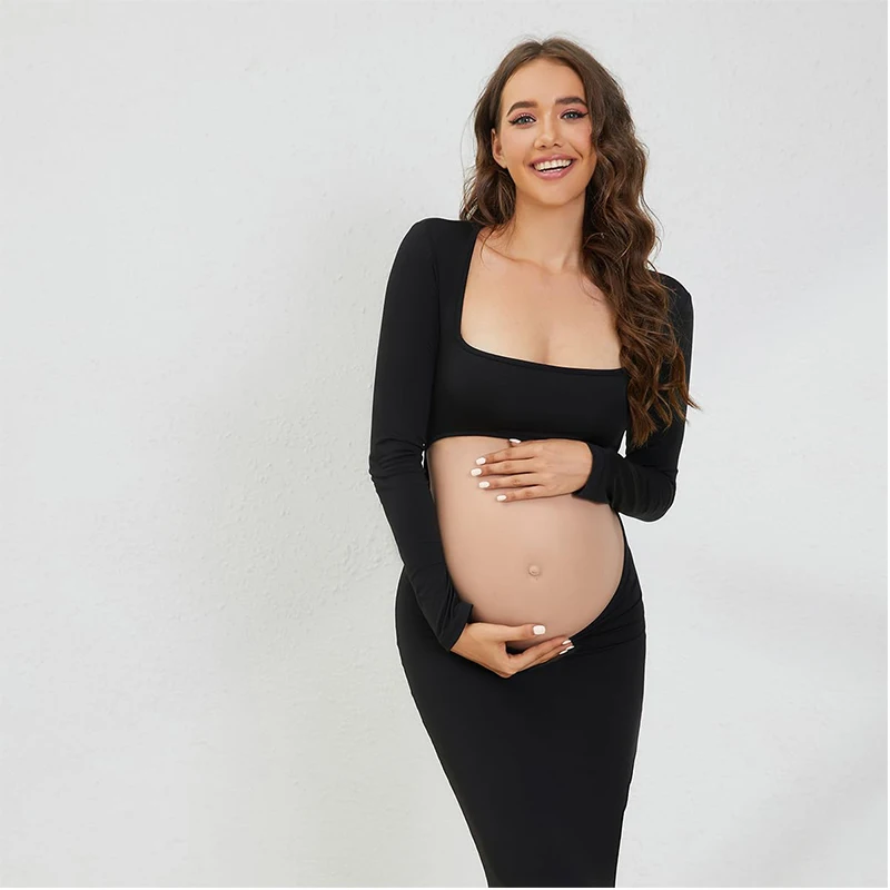 タートルネックの長袖マタニティドレス,写真撮影,写真アクセサリー,ベビーシャワー