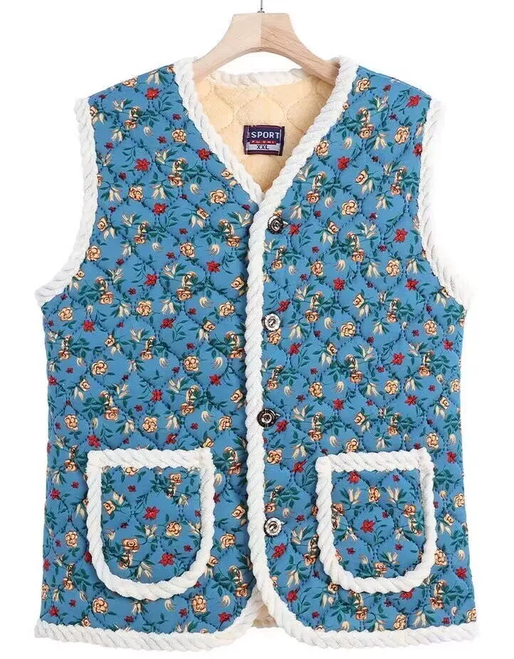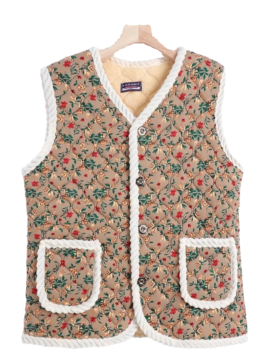 女性のフリース裏地ルーズフィット肥厚ベストカーディガンアウターファッショナブルな多用途ママスタイル秋冬新着 - TopDealBox
