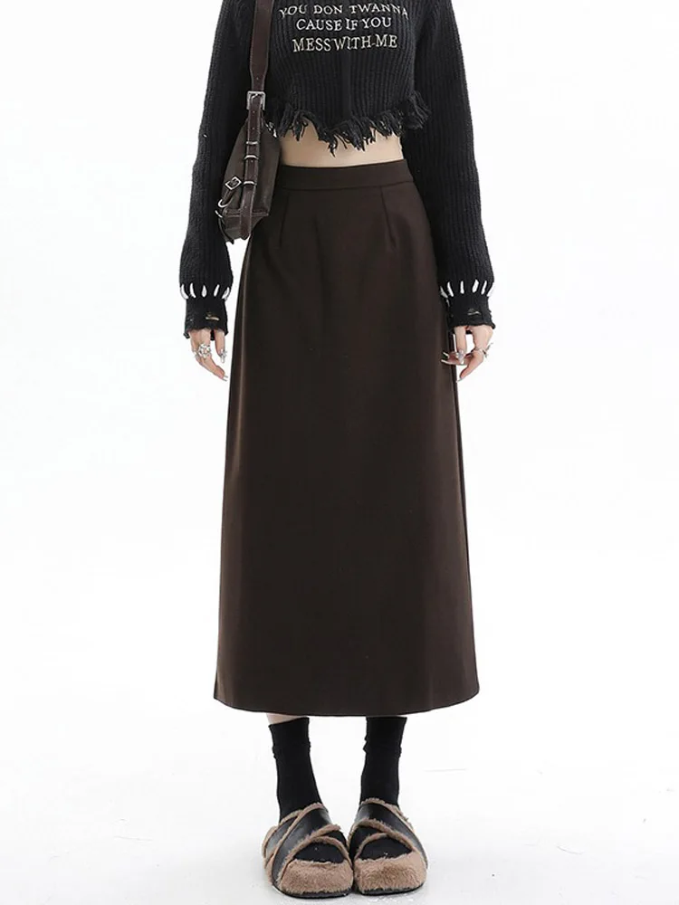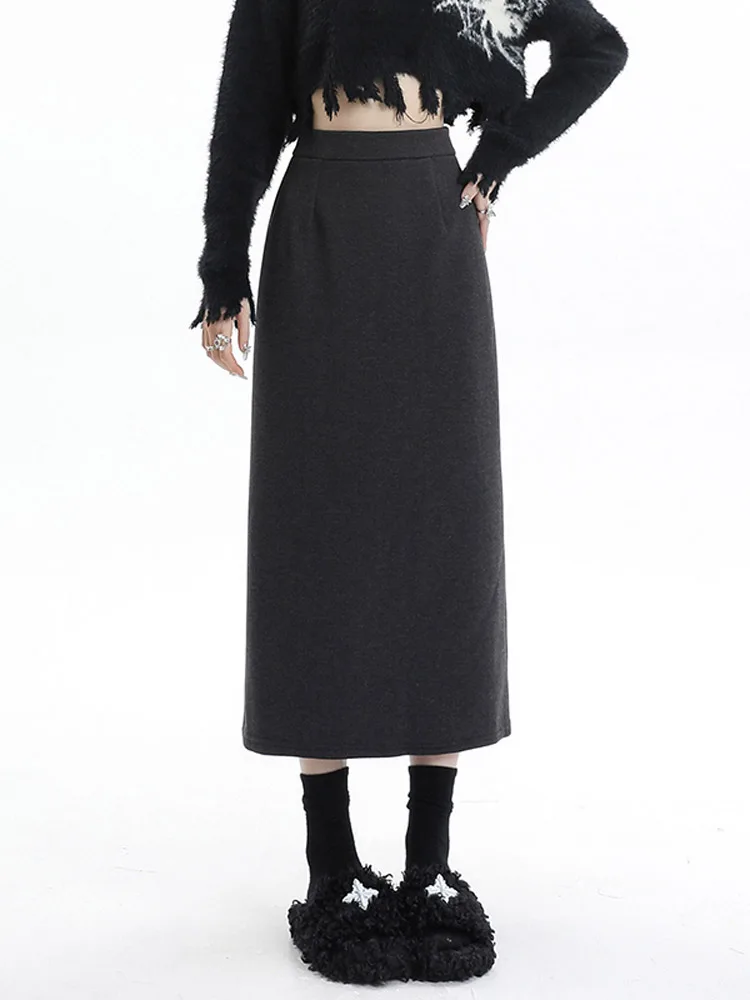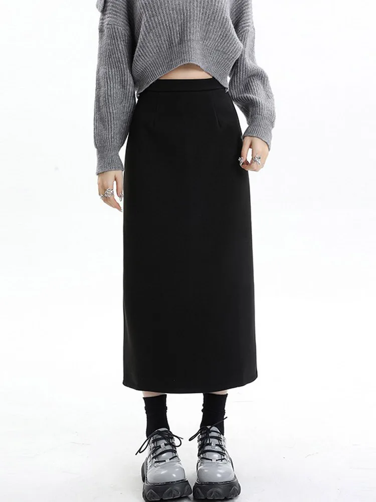 肥厚フリースウールミディスカートハイウエスト痩身スプリットバックスタイル女性のための通勤韓国語バージョンポリエステル繊維 - TopDealBox